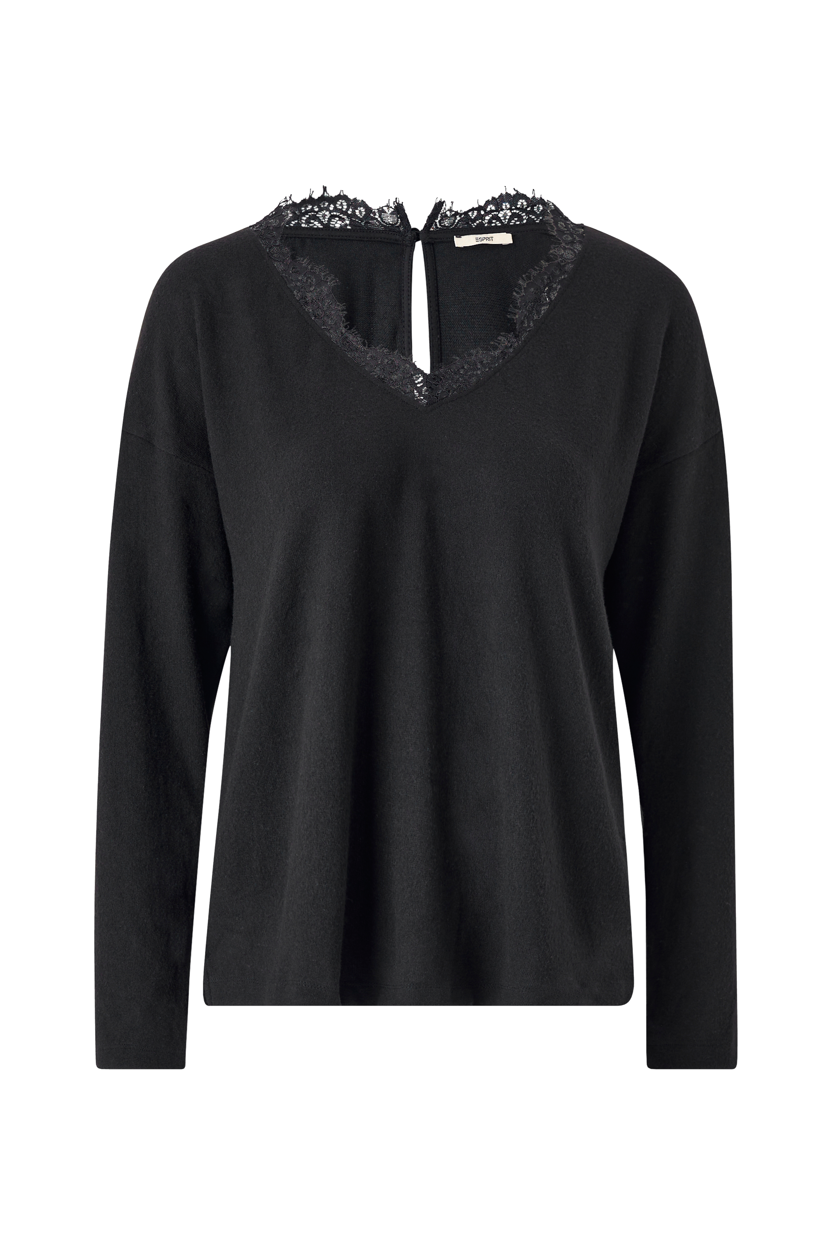 • V-kaula-aukko pitsillä• Halkio napilla niskan kohdalla• Pudotetut olkapäät• Valmistettu pehmeästä trikoosta