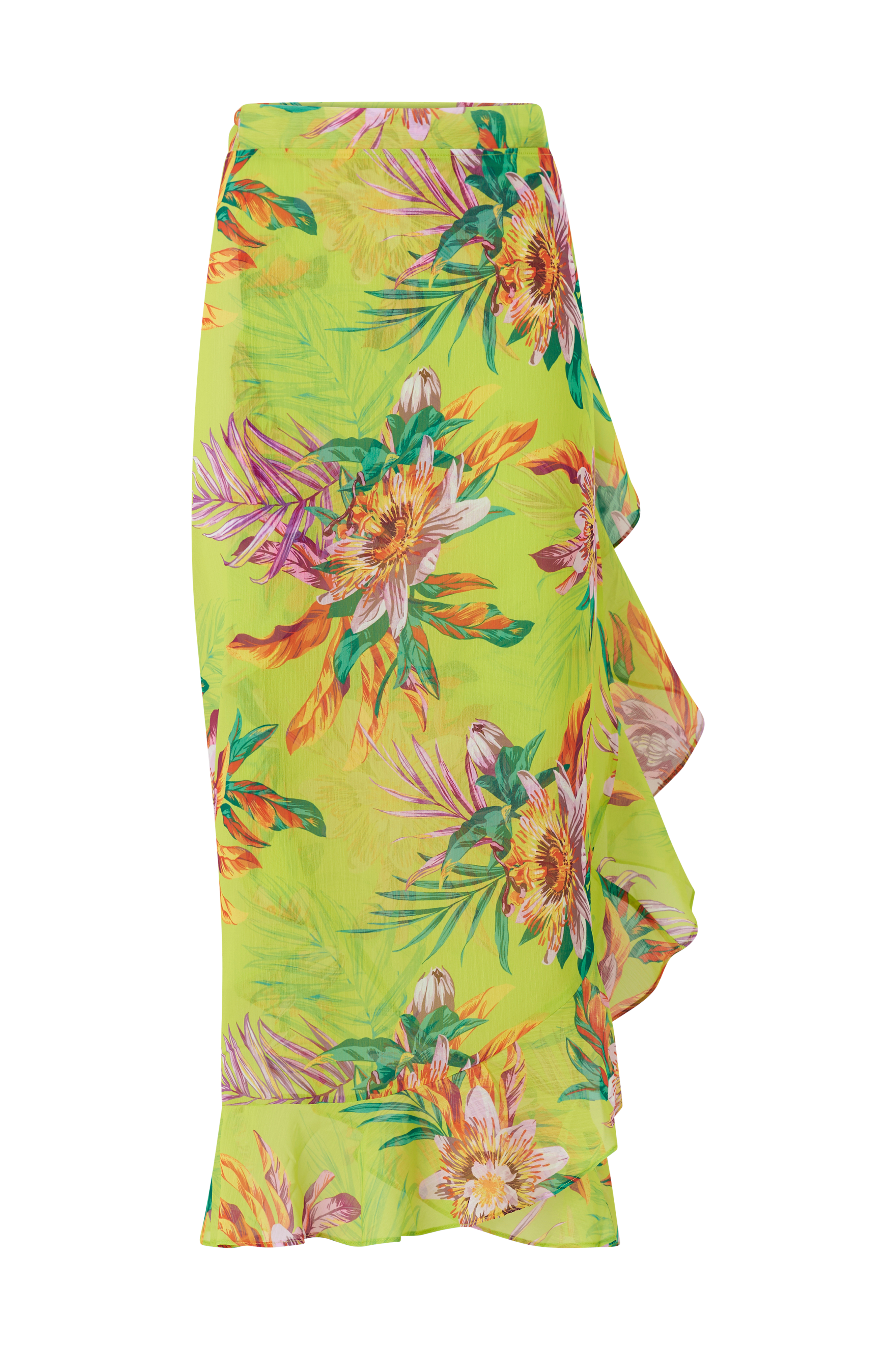 • Sarong läpikuultavasta laadusta painetulla kuvioinnilla• Ryöhelöyksityiskohta alahelmassa• Nyöri ylhäällä• Voidaan tyylitellä eri tavoin, voidaan käyttää hameena tai mekkona.