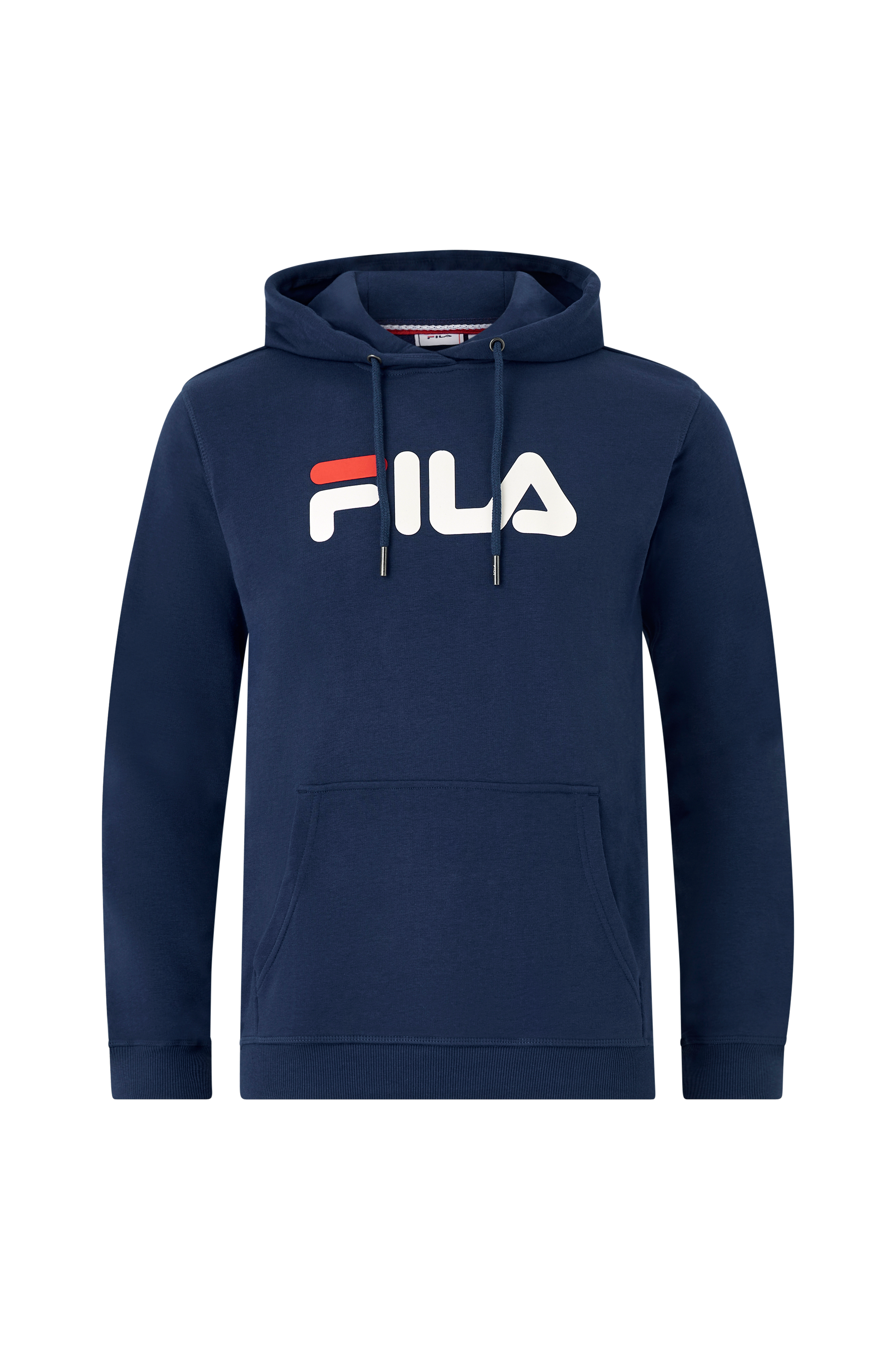 Fila-huppari, jossa painettu logo ja normaali istuvuus. Hupussa säädettävä nyöri. Hupparitasku. Hihansuissa ja helmassa resori.