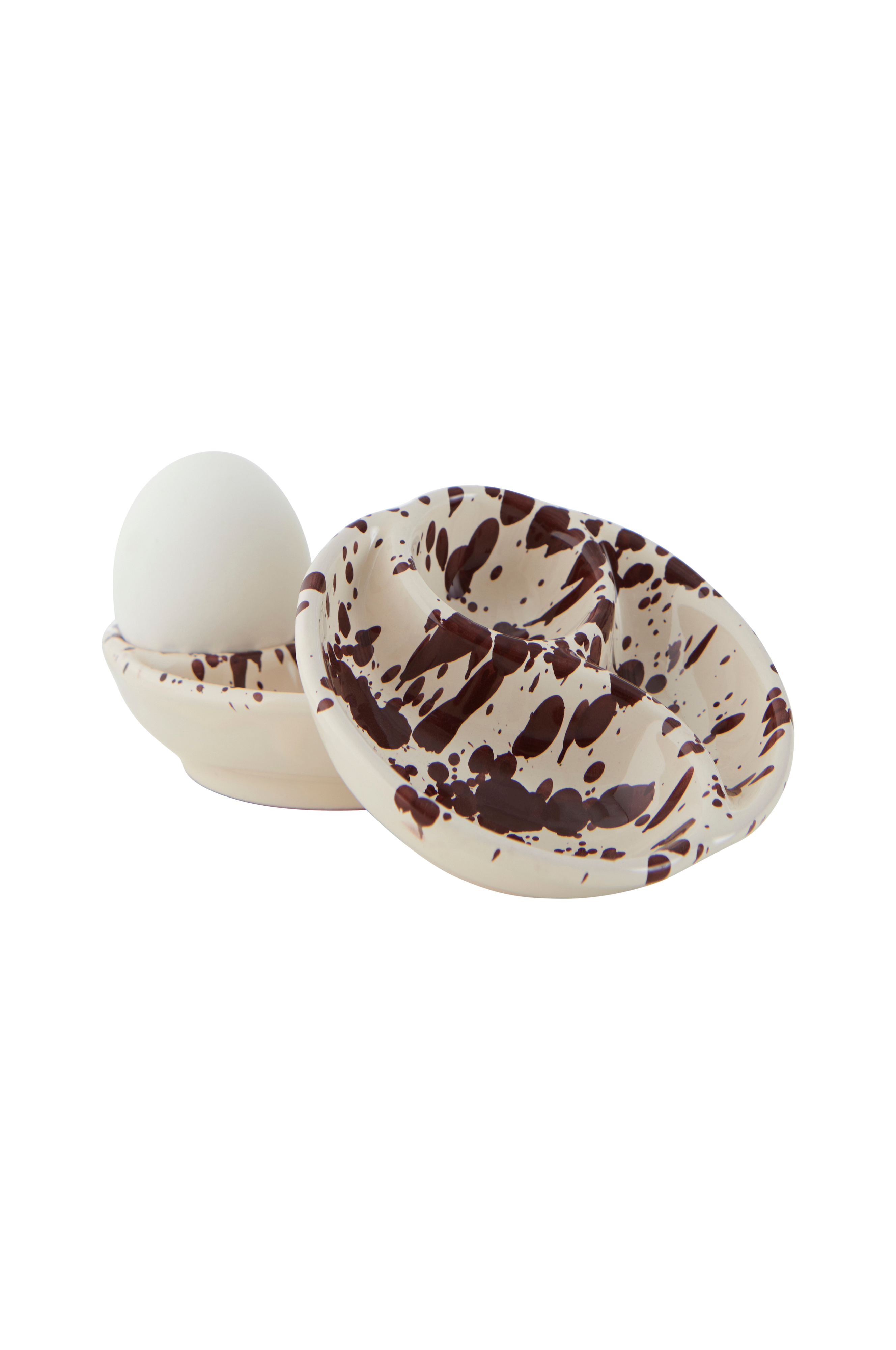 Spruzzi-munakupit kestävää italialaista keramiikkaa, joka on roiskemaalattu käsin.Korkeus 5 cm.