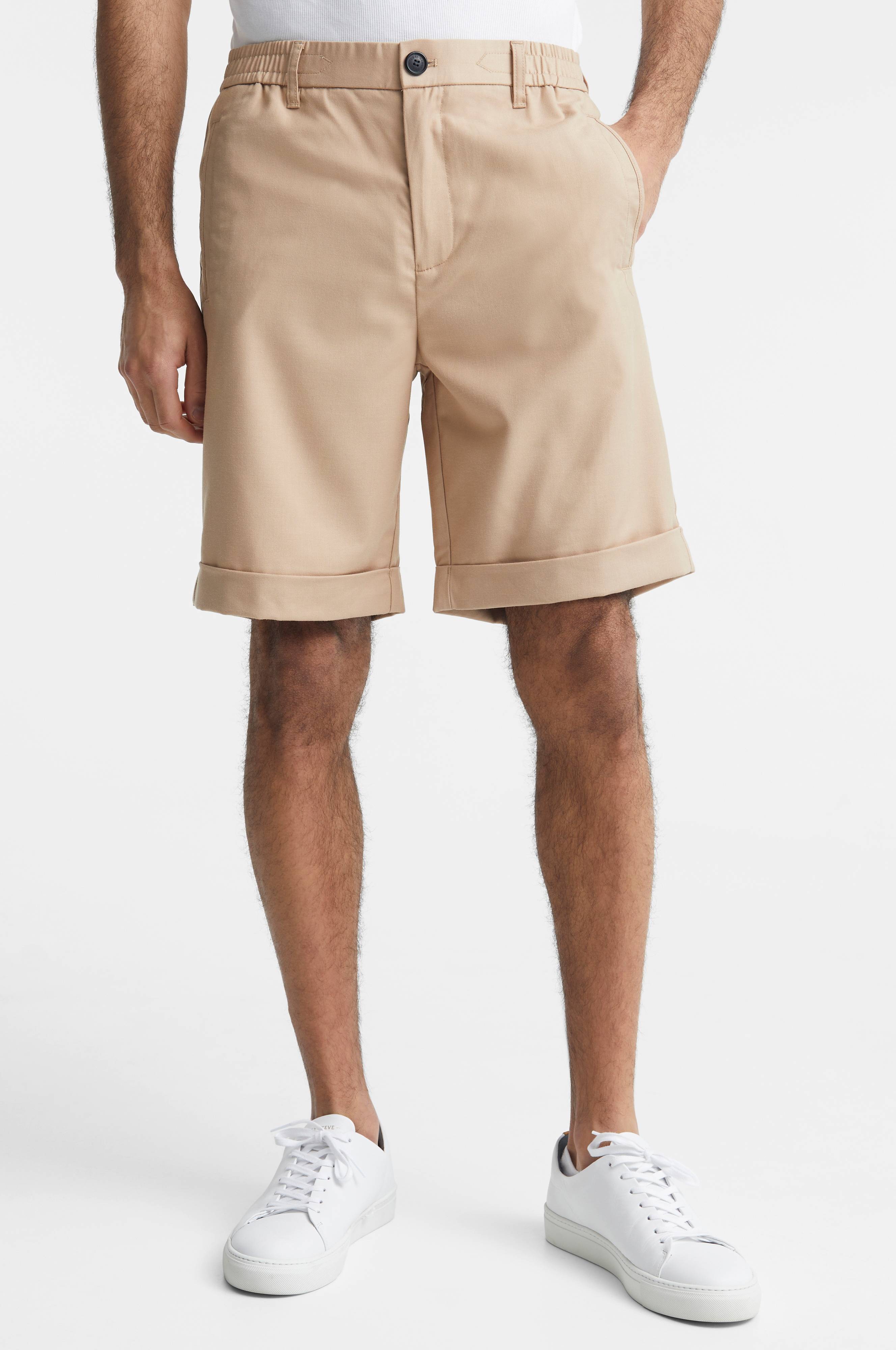 • Shortsit viskoosisekoitteesta joustolla• Joustava vyötärö vyönlenkeillä ja napilla• Vetoketjusepalus• Kaksi taskua edessä• Kaksi takataskua• Ommeltu lahkeen pituus