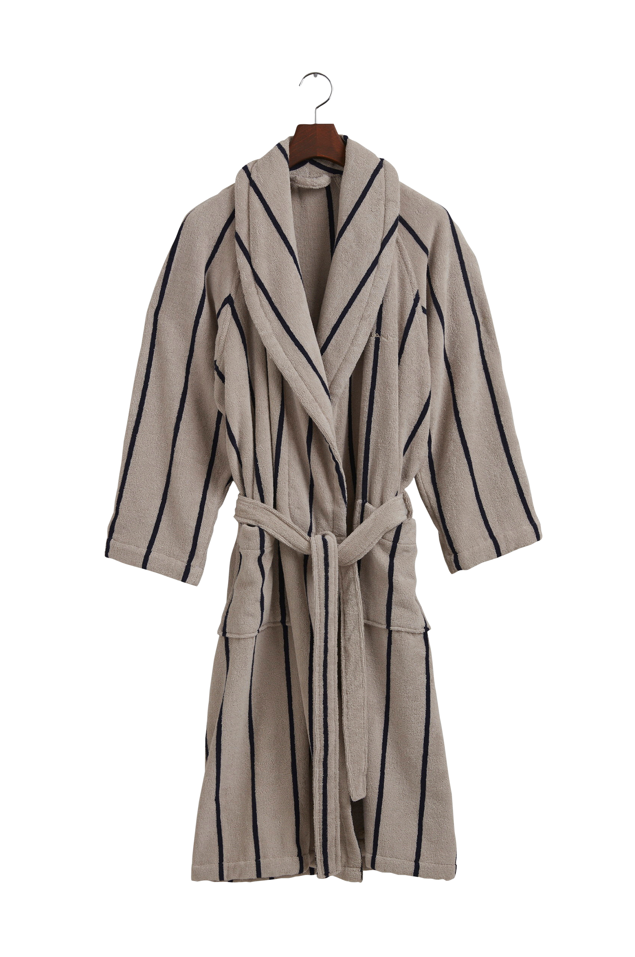Jakardikudottu raidallinen aamutakki ekologista puuvillaa. Tyylikäs GANT-logo.