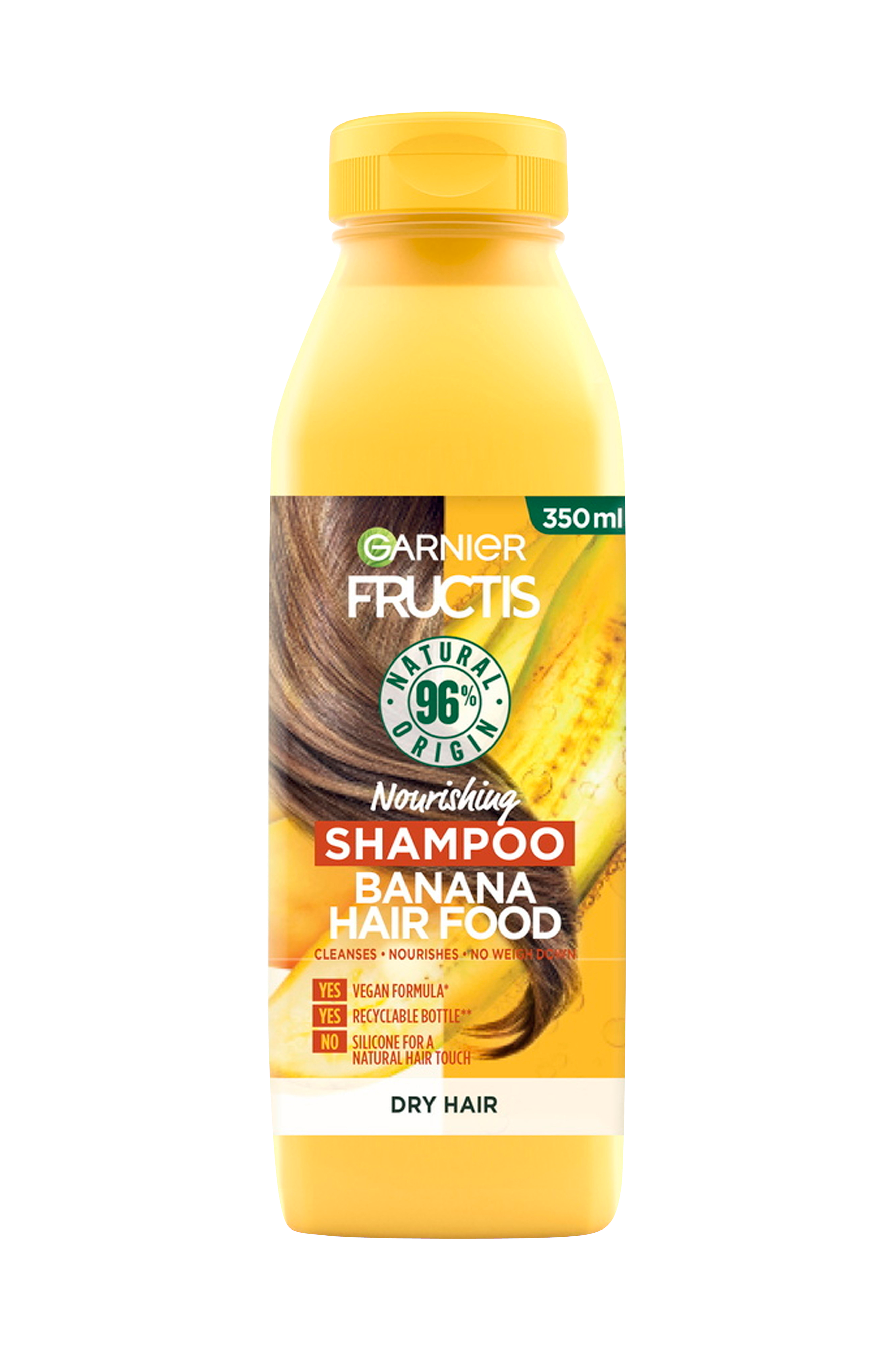 Fructis on luonut vegaanisen shampoon, jossa 98% ainesosista on luonnollista alkuperää. Kevyesti vaahtoava, hellästi puhdistava shampoo, joka ravitsee hiukset latistamatta niitä ja saa hiukset näyttämään hyvinvoivilta. Ravitseva Banana Hair food -sarja sisältää banaaniuutetta sekä runsaasti kosteuttavia ravintoaineita. Itsestäänselvä valinta ravintoa tarvitseville hiuksille. Ihana banaanin tuoksu.