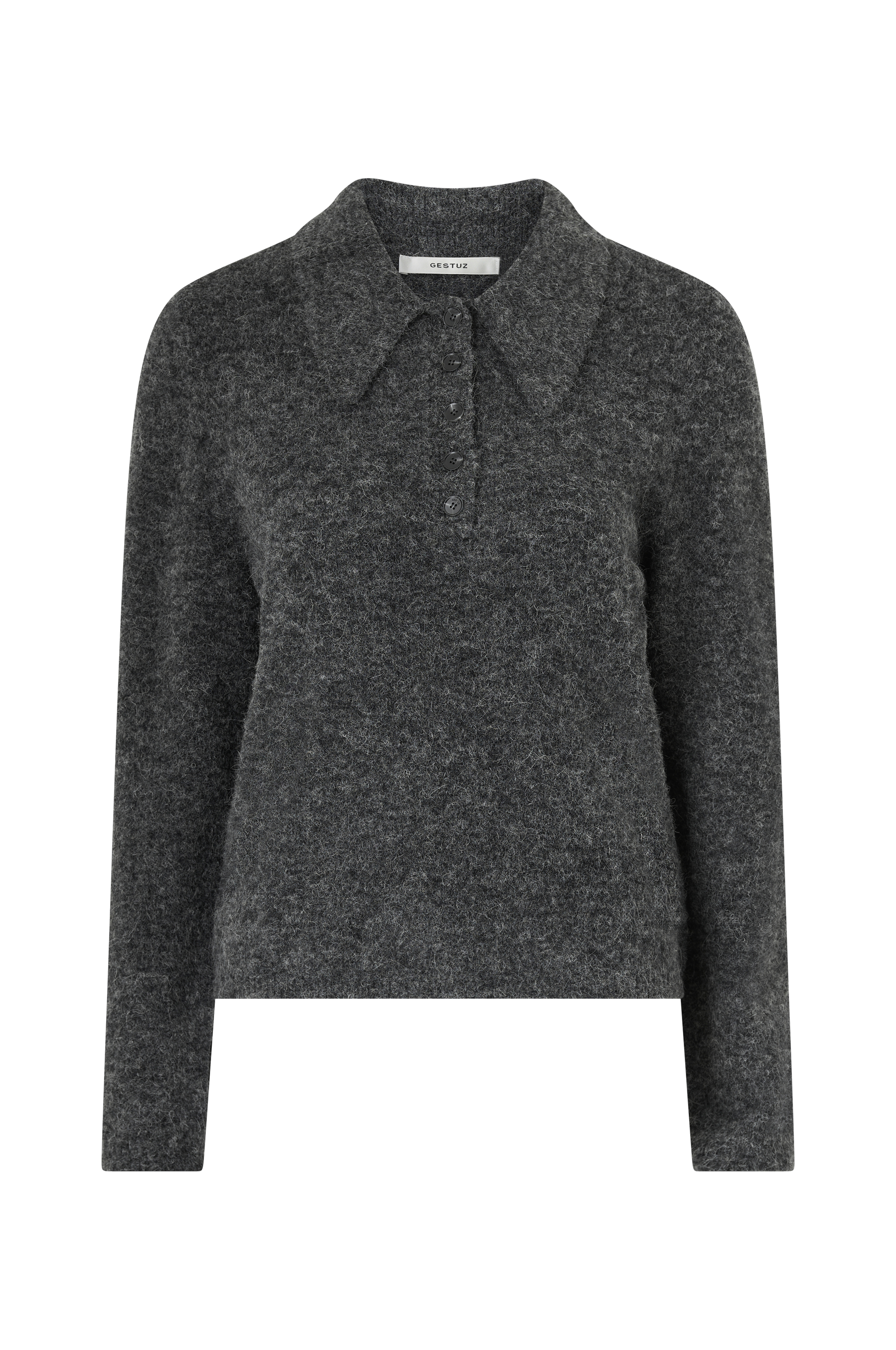 • Tiheäsilmukkainen, pitkähihainen pulloveri alpakka-sekoituksesta• Kaulus lyhyellä nappietupuolella edessä