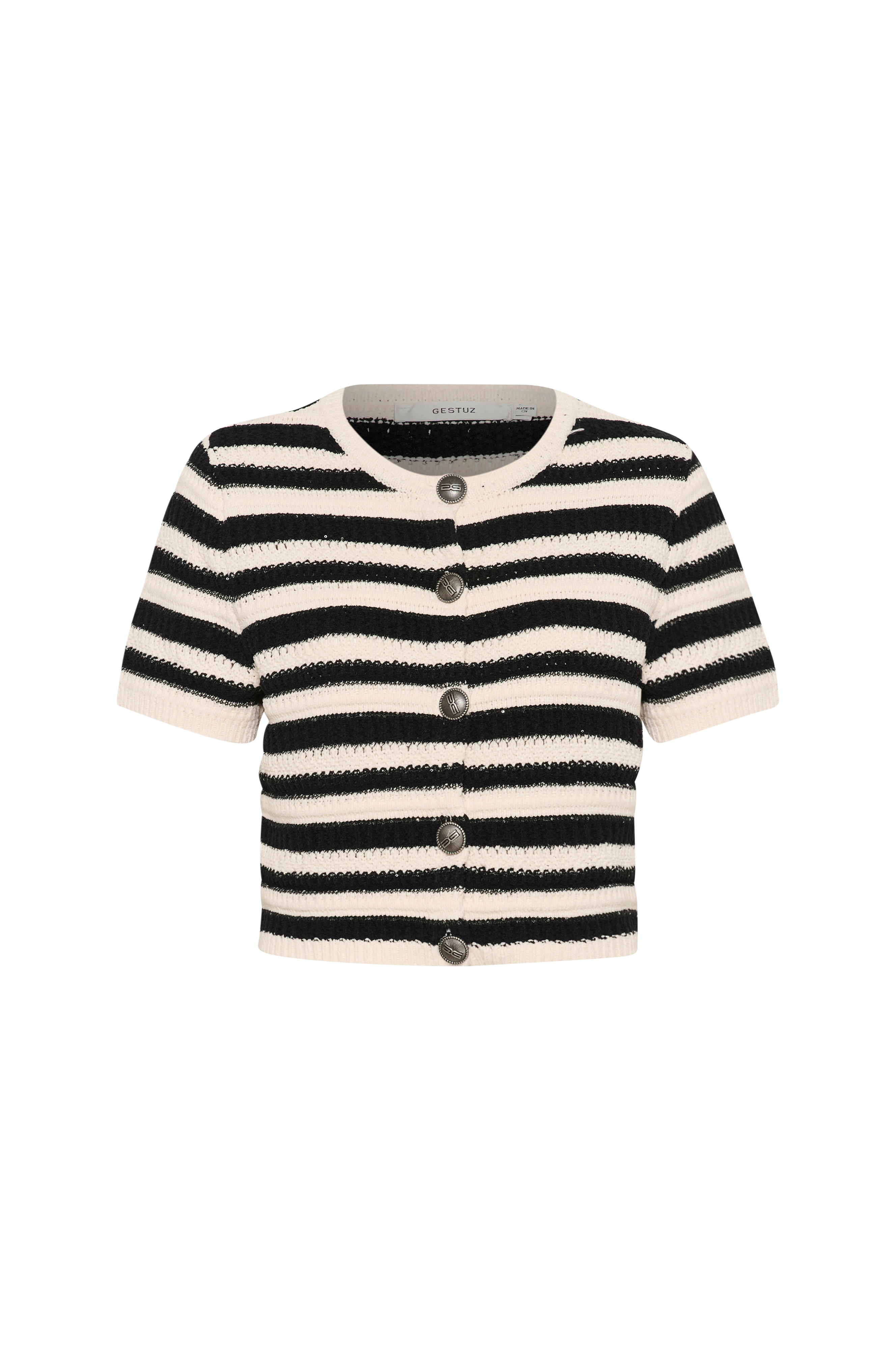 • Rakenneneulottu malli pienillä, kiinniommelluilla paljeteilla