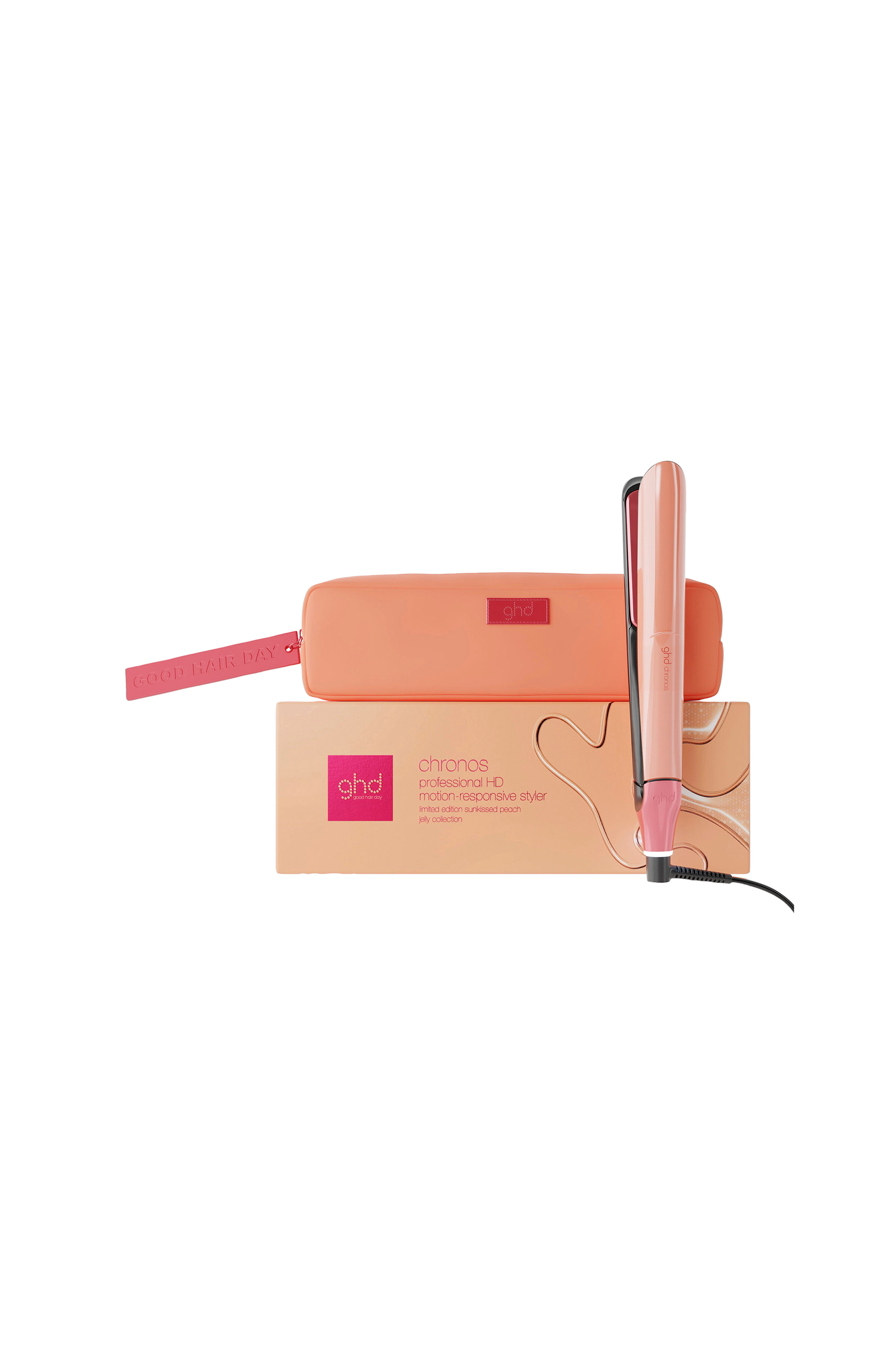 Astu muotoilun makealle puolelle uuden rajoitetun painoksen Jelly Collection -malliston ghd Chronos™ -hiusten suoristuslaitteella. Kauneutta ja teknologiaa yhdessä tyylikkäässä muotoilussa yhdistävä ghd Chronos™ on täällä avaamassa loputtomia muotoilumahdollisuuksia. Leikkisä persikkainen viimeistely ja upeat sokeripinkit somisteet tekevät siitä enemmän kuin vain työkalun - se on statement. Lisäksi sen mukana tulee yhteensopiva kuumuutta kestävä laukku ⁴, joka suojaa muotoilulaitettasi missä ikinä menetkin tänä kesänä, tehden suloisista hiuspäivistäsi täydellisiä.