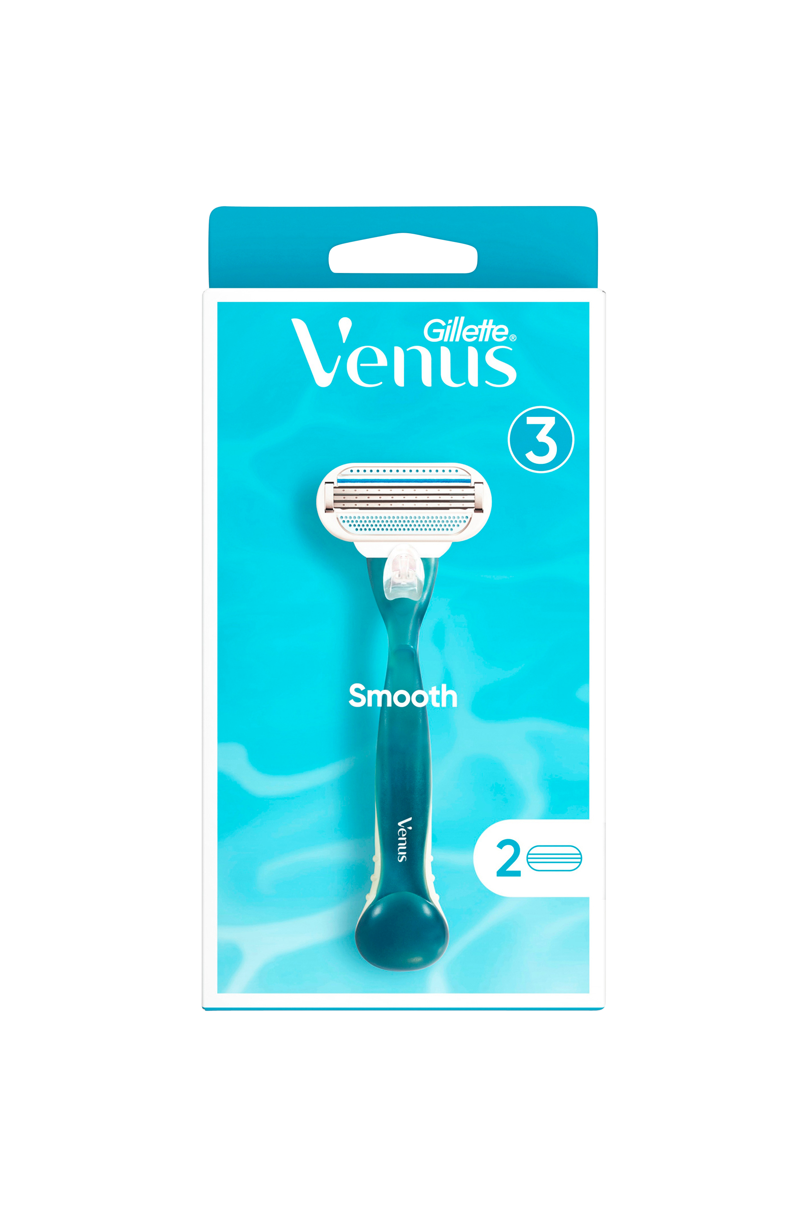 Venus Smooth on naisille suunniteltu varsiterä, jossa on 3 terää. Vaihtoterässä on 3 myötäilevää terää, joita ympäröivät suojatyynyt venyttävät ihoa varmistaen nopean ja helpon ajon ja luotettavan tuloksen. Terissä on myös sininen merkkinauha, jonka värin haalistuminen kertoo, että et enää saa ihanteellista tulosta.