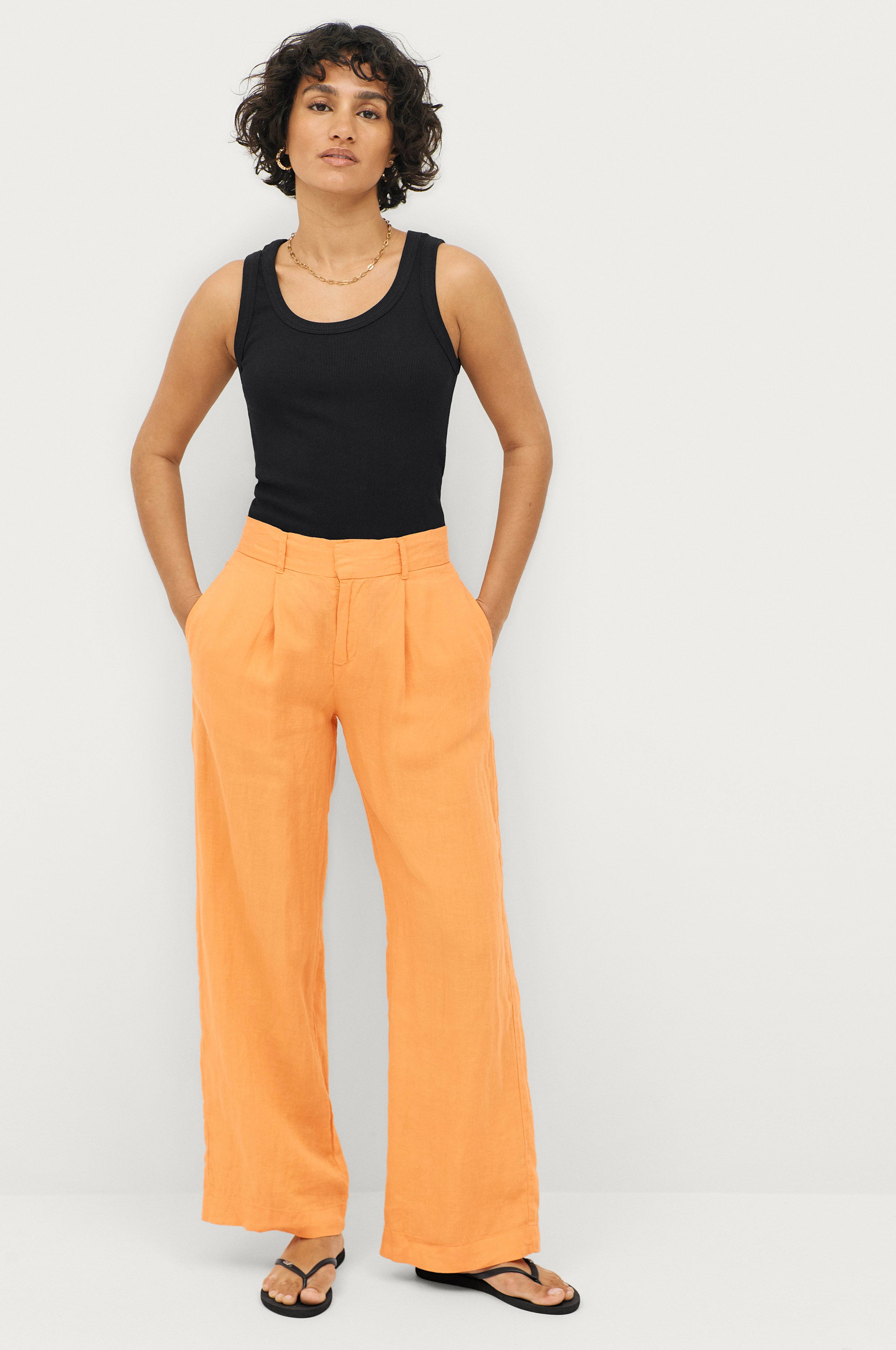 Tyylikkäät leveälahkeiset pellavahousut, jotka istuvat hyvin ja ovat mukavat ja viileät osittain takana olevan kuminauhan ansiosta, mutta myös siksi, että ne ovat 100% pellavaa.…