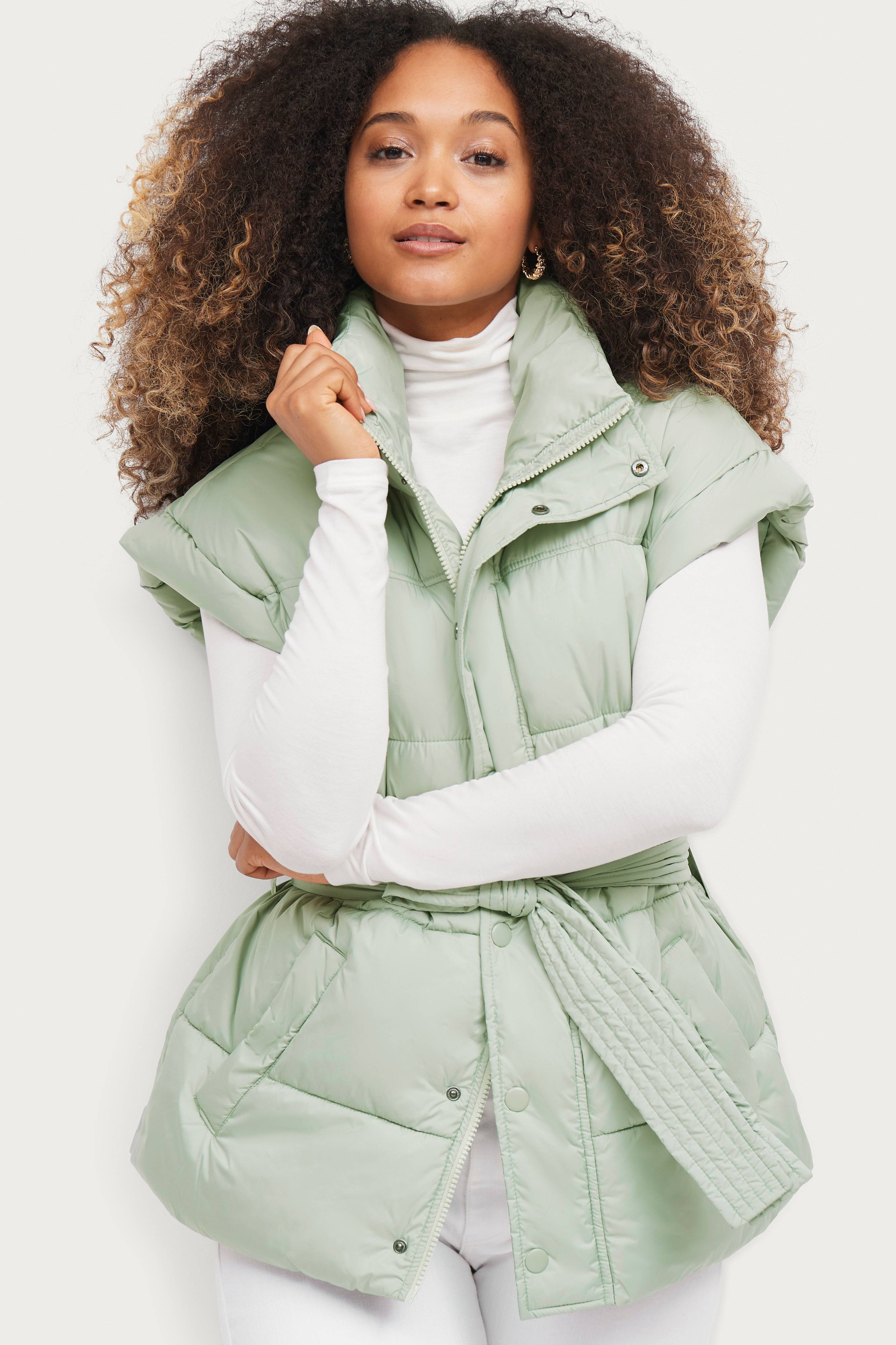 • Tikattu, topattu liivi • Korkea kaulus • Vetoketju • Tuuliläppä neppareilla • Irrotettava itsesolmittava vyö vyötäröllä • Kaksi taskua • Pituus: 74 cm koossa S • Tuote sisältää kierrätettyä materiaalia, jonka käyttö vähentää jätteen määrää ja säästää luonnonvaroja.