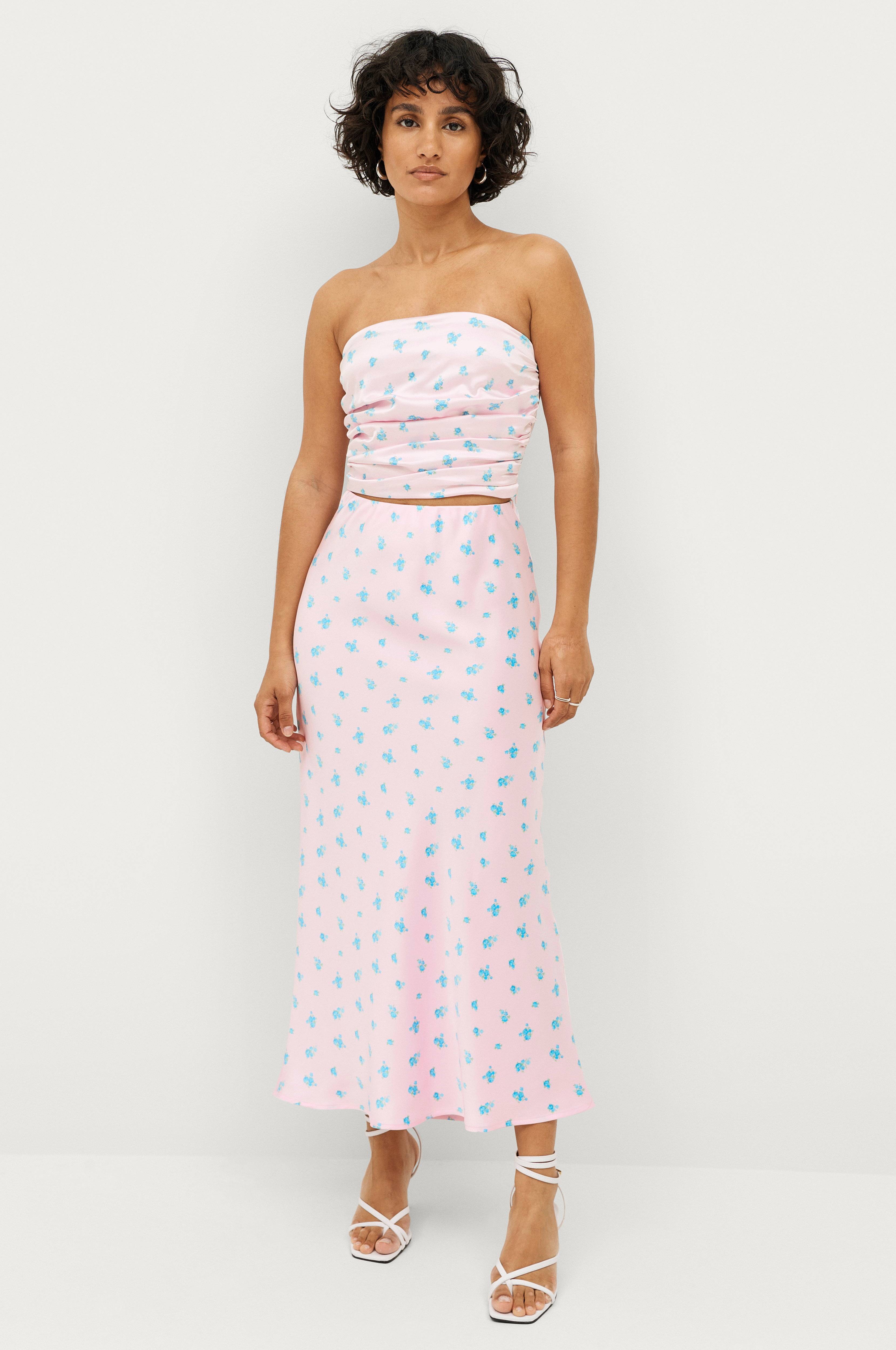 Ihanat värit ja printti. Vyötärö joustaa eikä paina mistään. Satiininen hame laskeutuu kauniisti ja hame sopii niin arkeen kuin juhlaan.