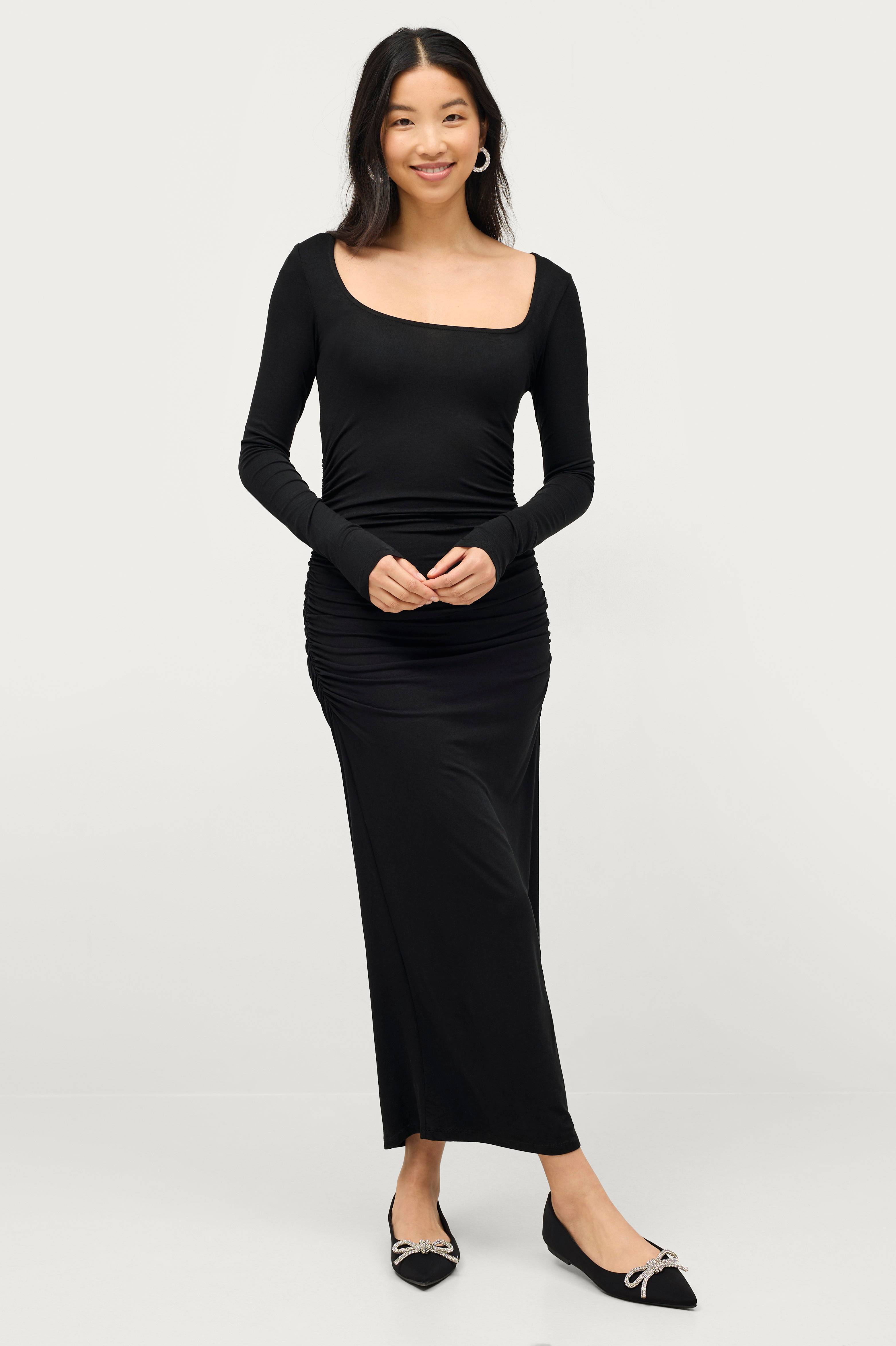 • Vartalonmyötäinen mekko trikoosta• Drapeeraus sivuilla• Pitkät hihat• Pituus: 128 cm koossa S
