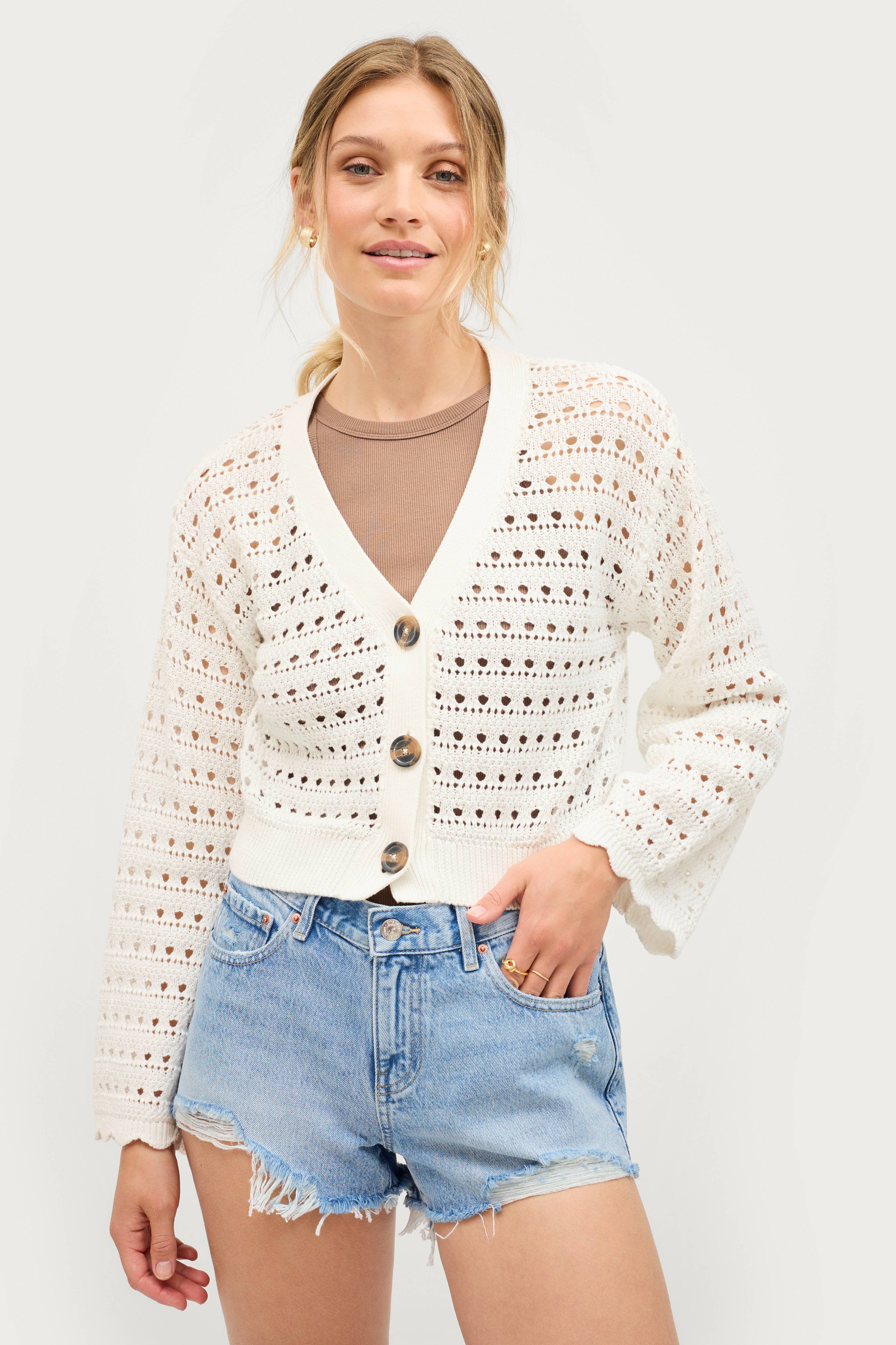 • Neulottu, reikäkuvioinen neuletakki puuvillasta