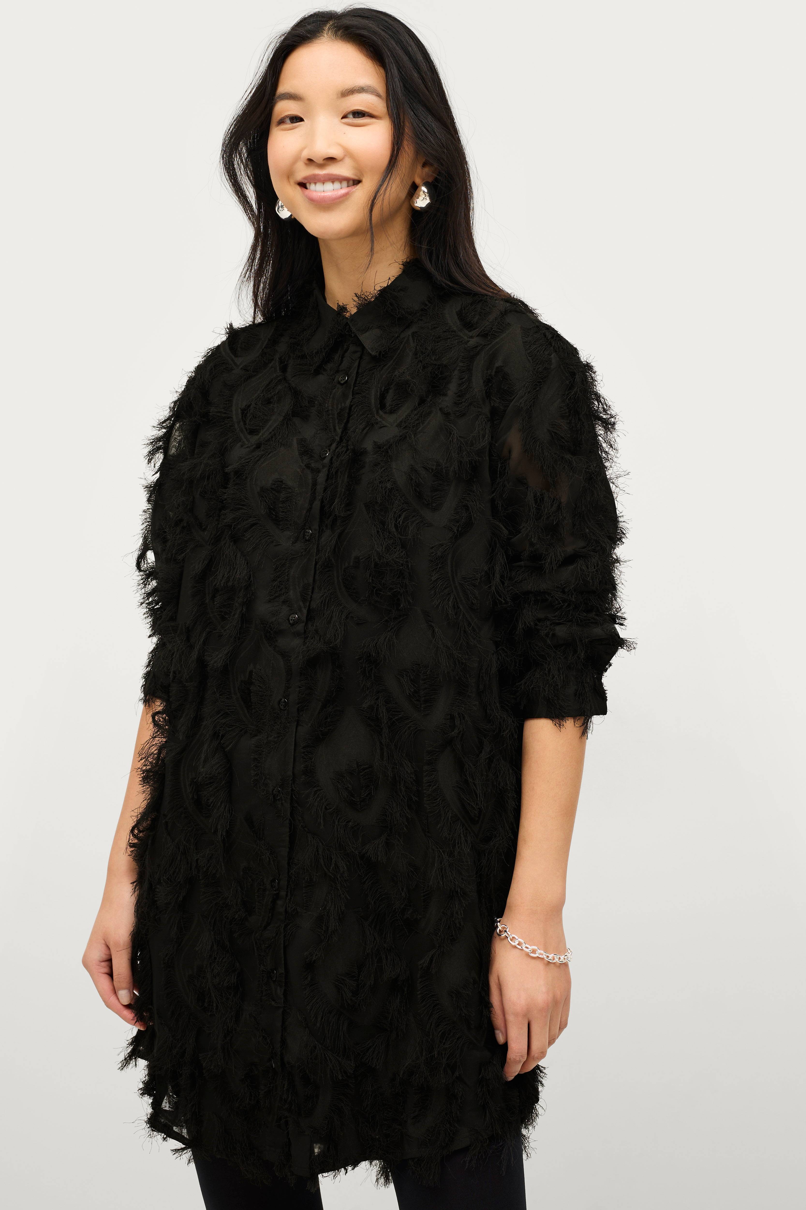 • Lyhyt mekko hapsuilla• Napit edessä• Suora, löysä istuvuus• Kudottu vuori• Pituus: 82 cm koossa S