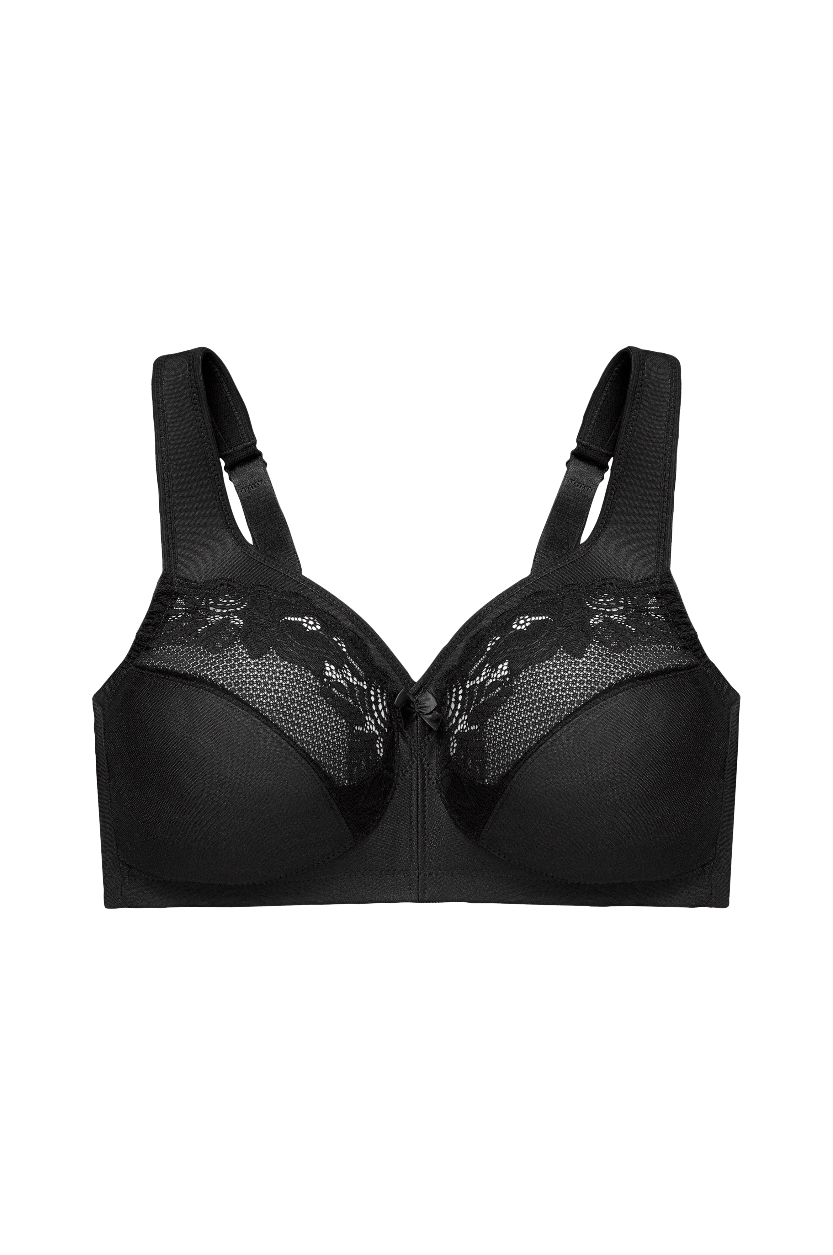 Minimizer-kupit ja kaaritueton tuki antavat yhdessä mukavuutta ja sileän siluetin. Pehmeä kuminauha alareunassa ja pitsiupotus kupeissa. Vakaa, leveä verkkokangasnauha ja hakaskiinnitys takana. Säädettävät olkaimet.