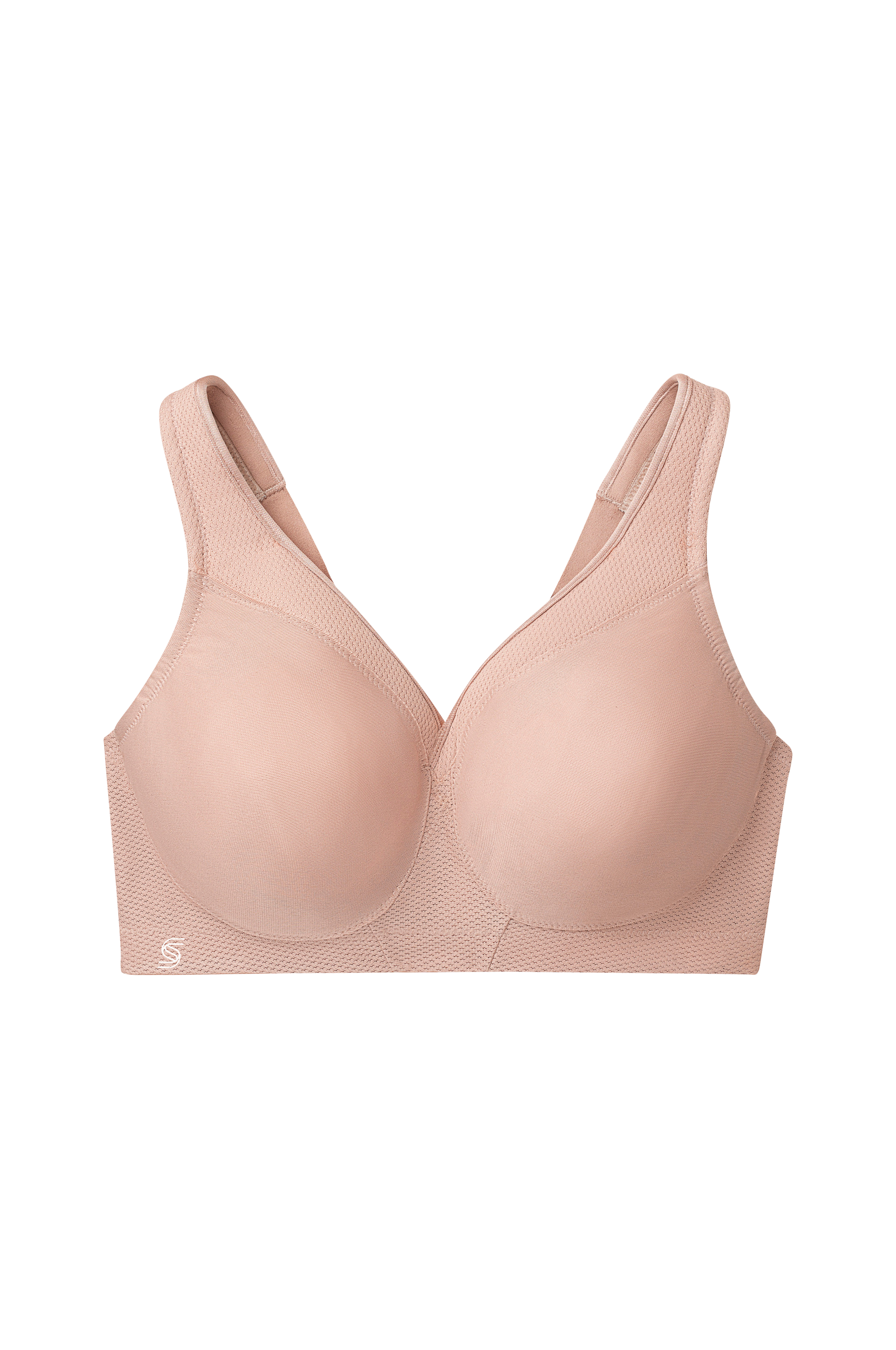Saumaton design ja muotoillut kupit ilman kaaritukia. Leveä kuminauha alareunassa sekä kevyt toppaus kupin alareunassa. Kosteutta siirtävää materiaalia, jossa verkko-osiot takana. Kevyesti topatut olkaimet, jotka voidaan säätää halutun pituisiksi. Leveä hakaskiinnitys selässä.
