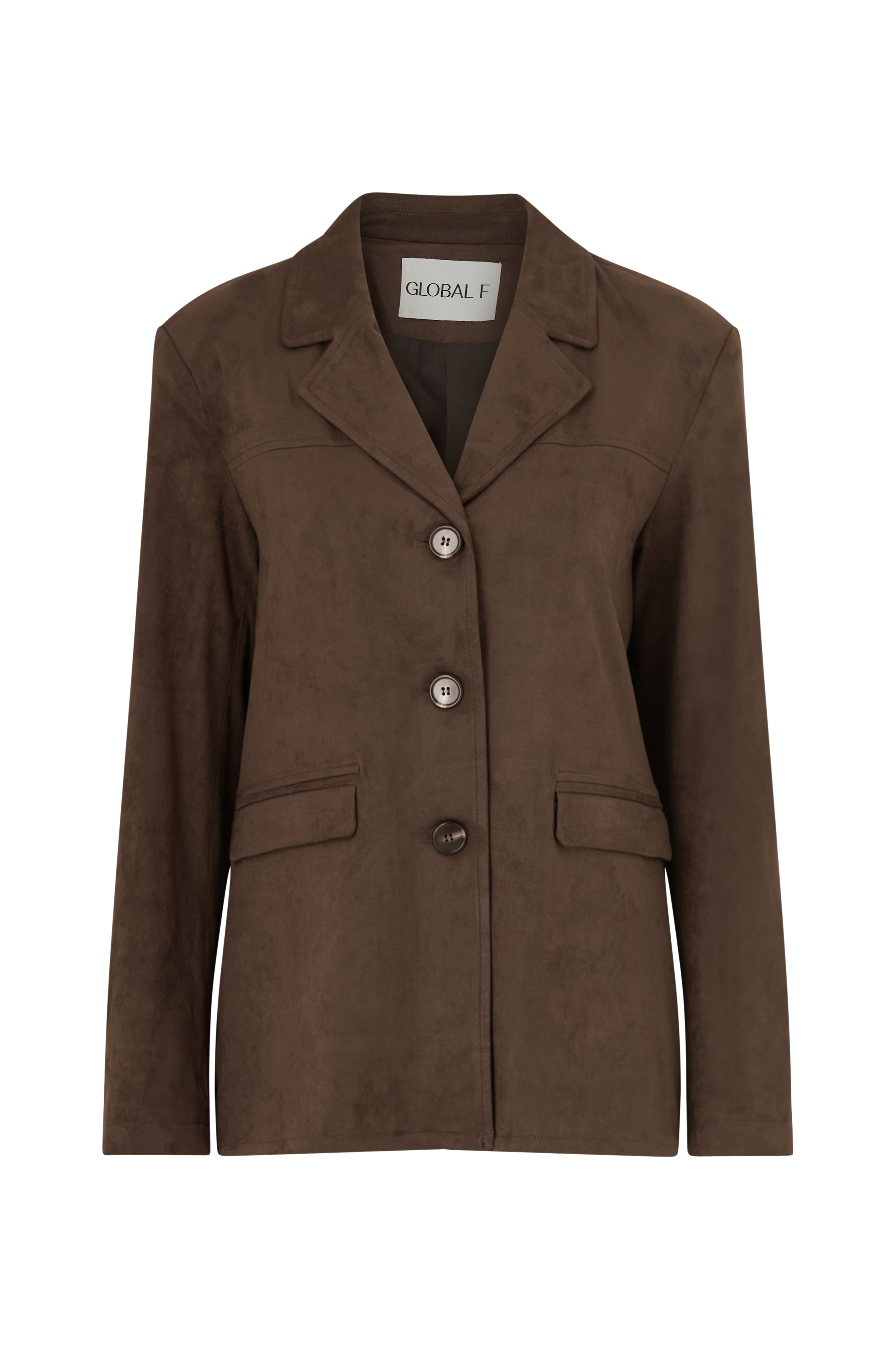 • Bleiseri mokkajäljitelmästä• Kaulus• Nappikiinnitys• Tekstiilivuori• Kaksi taskua kannella• Suora istuvuus• Pituus: 73 cm koossa S