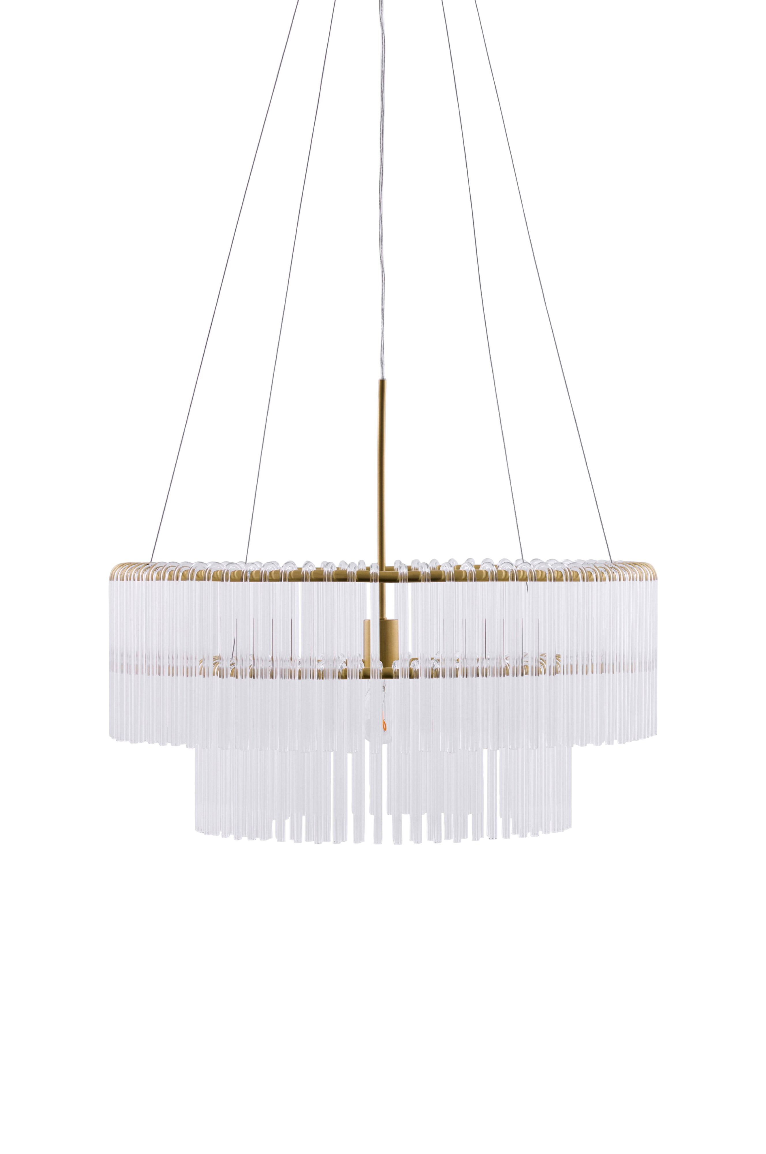 Hook on silmiinpistävä kattokruunu, josta tulee vaikuttava keskipiste kattoon lasisauvojensa ansiosta. Elin Tapperin suunnitteleman valaisimen ideana oli luoda huomiota herättävä ja tyylikäs valaisin, joka vangitsee perinteisten ominaisuuksien olemuksen. Modernistisen muotoilun ansiosta Hook yhdistää koristeellisuuden ja toiminnallisuuden ja ilmentää "roikkumisen" toimintaa perinteisten lasikristallien uudelleentulkinnallaan. Valaisin on valmistettu galvanoidusta metallista harjattua messinkiä ja kirkasta lasia, ja sen mukana toimitetaan pari varalasitankoa. Valaisimessa on 200 cm pitkä läpinäkyvä kaapeli, jossa on kolme johtoa, ja siihen sopiva kattokuppi. Huomaa, että kattoliitäntään tarkoitettu lampun pistoke myydään erikseen.