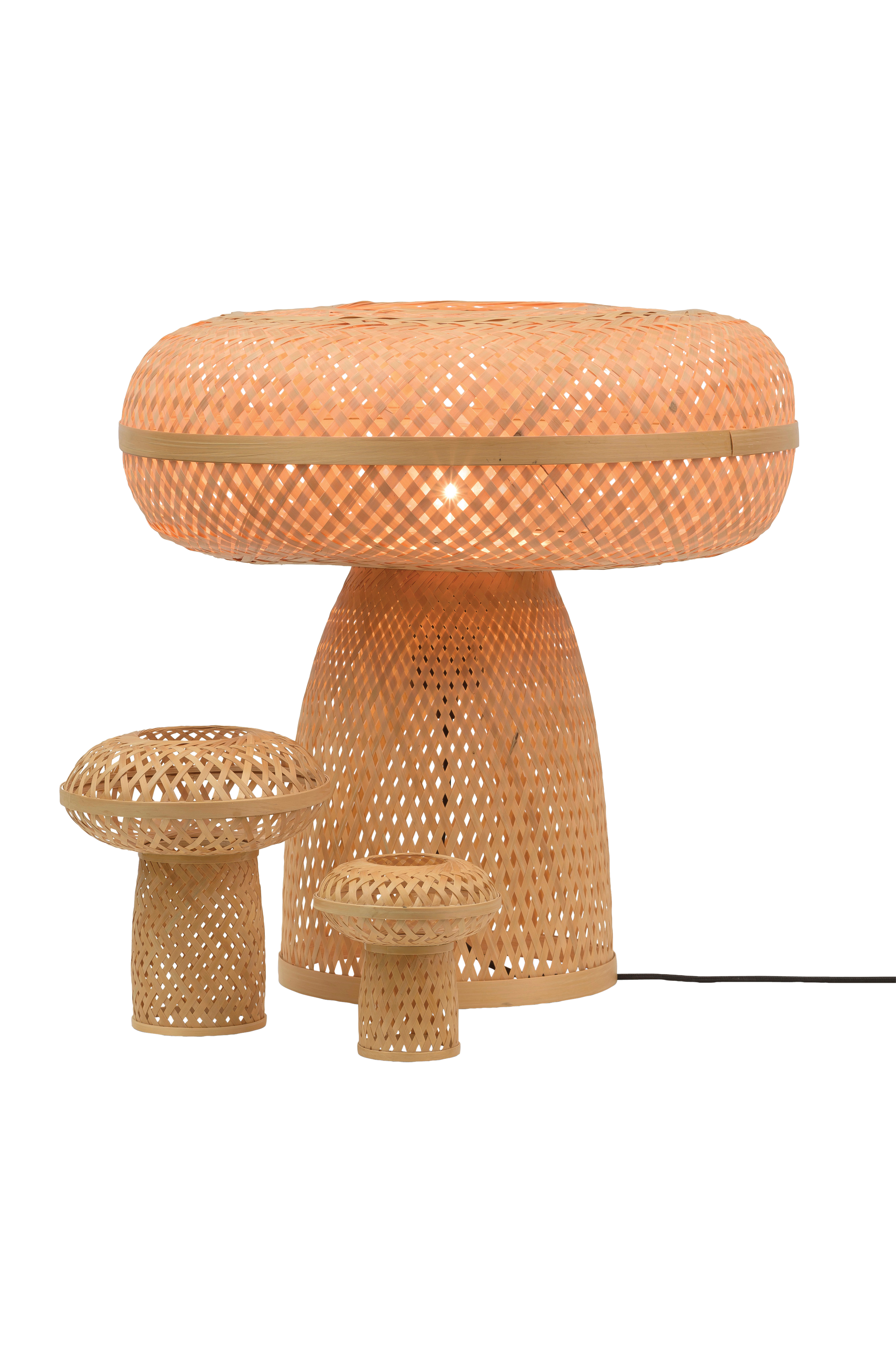 Palawan-pöytävalaisin, setissä 3 kpl. Bambua. Korkeus 40 cm ja halkaisija 40 cm. Enintään 40 W. E27-lampunkanta. Johdon pituus 2,25 metriä. Valonlähde ei sisälly toimitukseen.