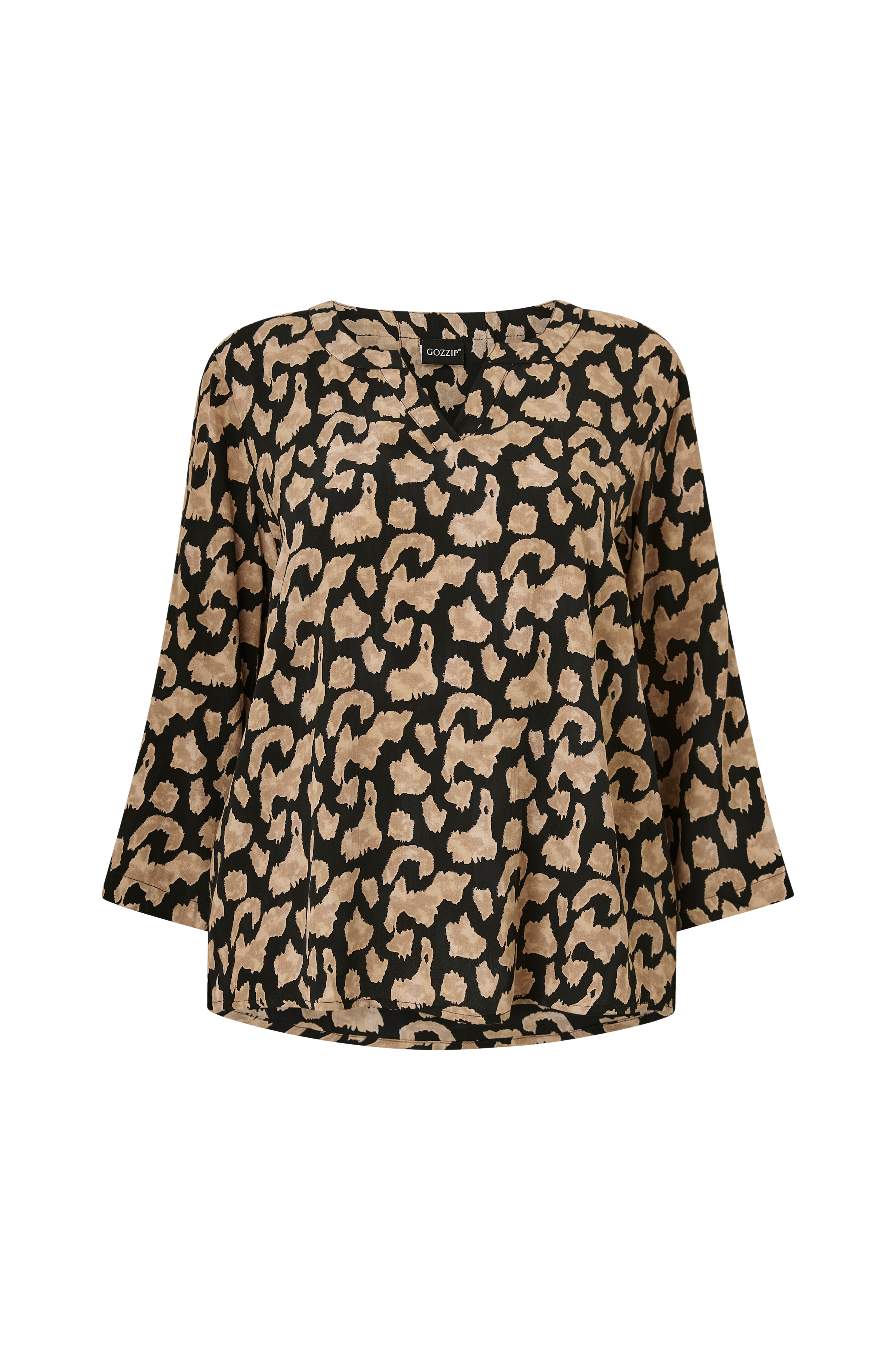 • Kuvioitu pusero viskoosista• V-kaula-aukko• Leveät hihat hihassa olevalla napilla