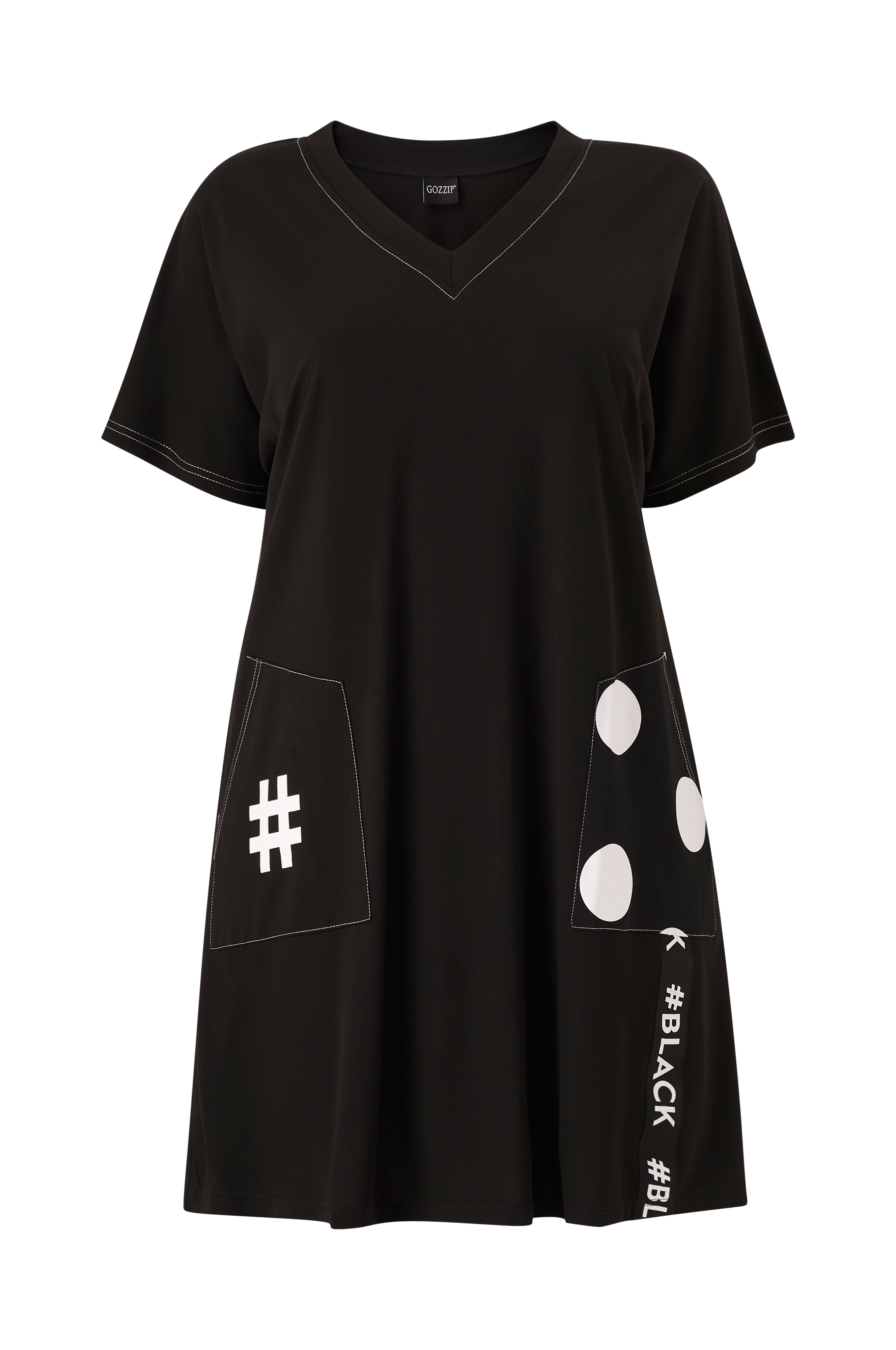 • V-kaula-aukko• Lyhyet hihat• Taskut printillä• Plus-koot• Pituus: 98 cm koossa S