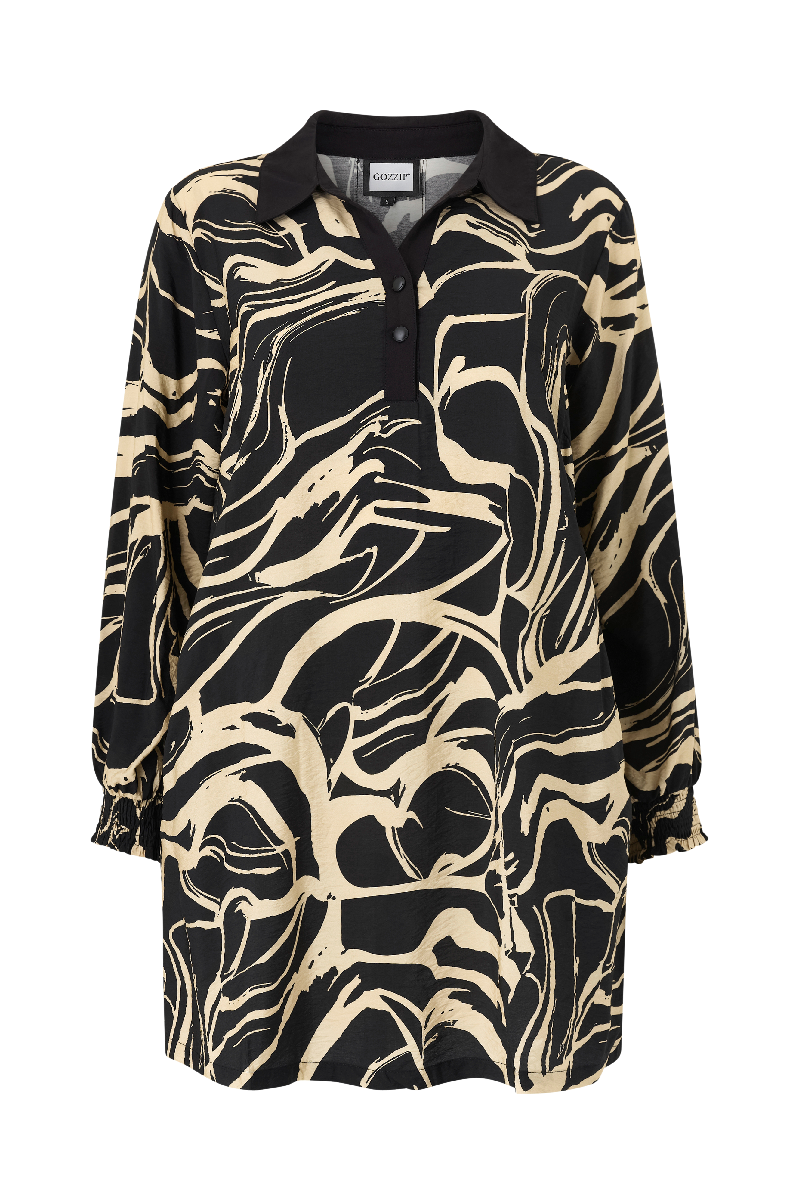 • Kuvioitu tunika viskoosisekoitteesta kauluksella• V-muotoinen pääntie lyhyellä nappietupuolella• Pitkät hihat rypytyksellä hihansuissa• Sivutaskut• Vastalaskos takaosa• Plus-koot• Pituus: 94 cm koossa S