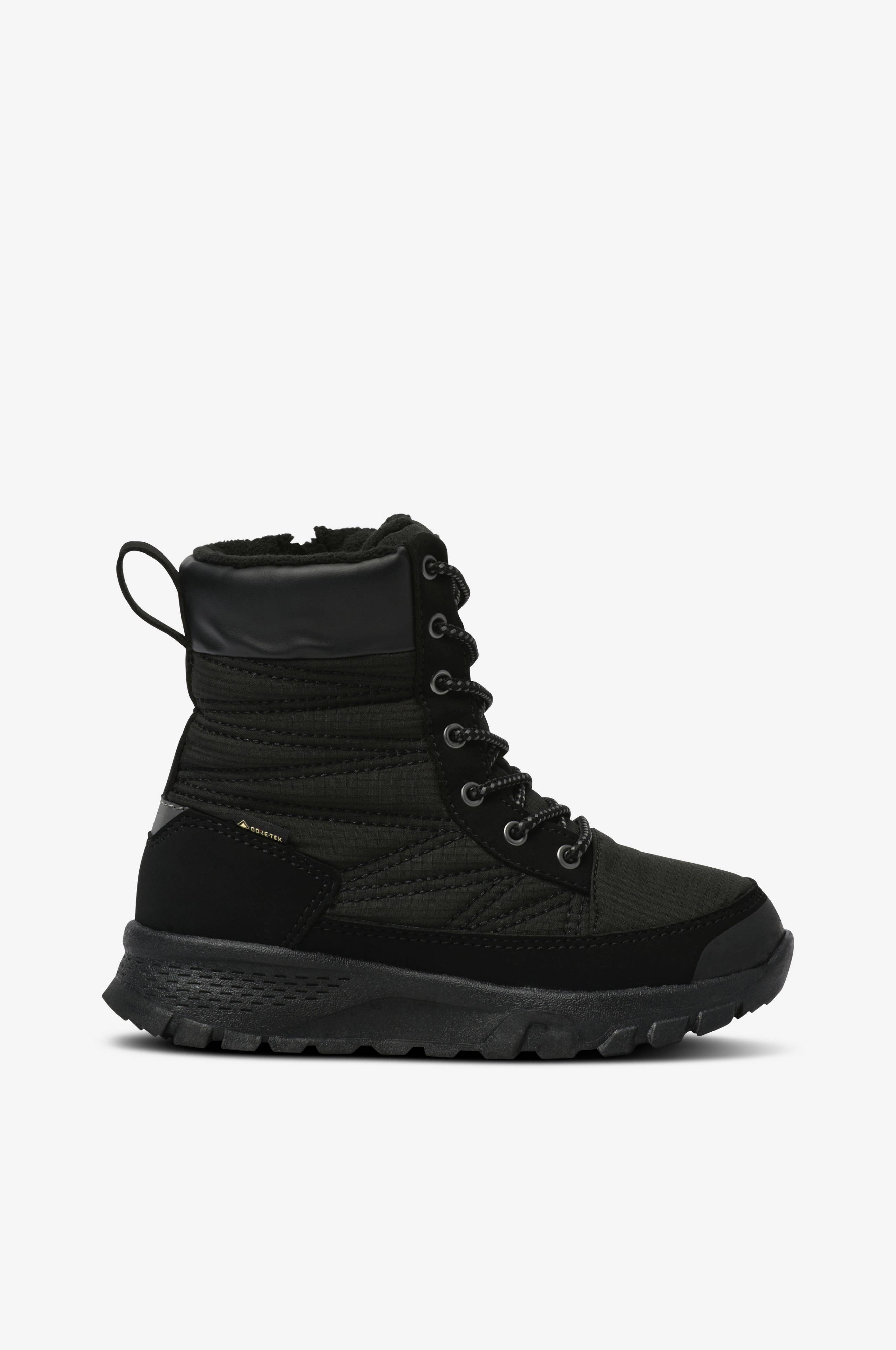 Vedenpitävät talvikengät, joissa pehmeä ja lämmin fleecevuori. Gore-Tex-kalvo pitää jalat kuivina. Vetoketju varren sivulla ja nyöritys edessä. Vakaa ja pitävä ulkopohja. Vetolenkki takana.