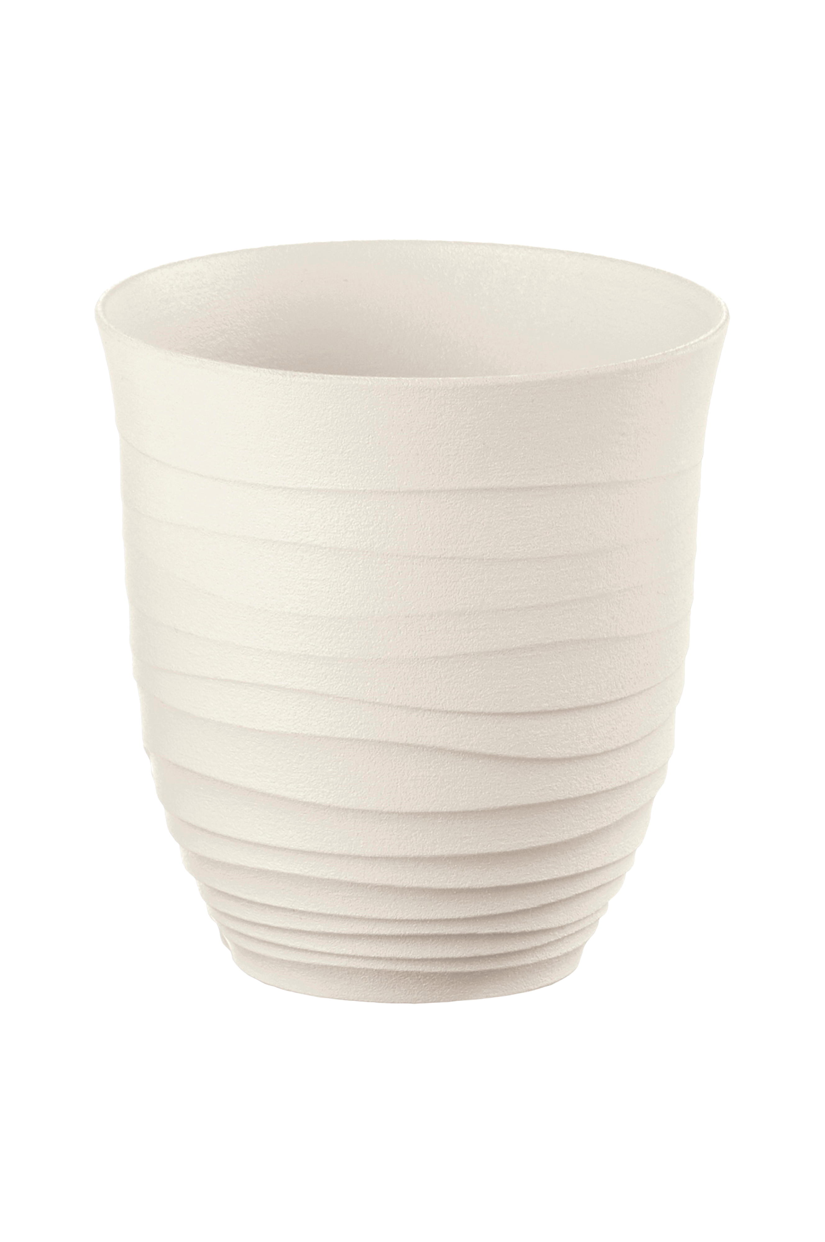 Epäsäännöllisen muotoinen muki biomassasta valmistettua muovia.
