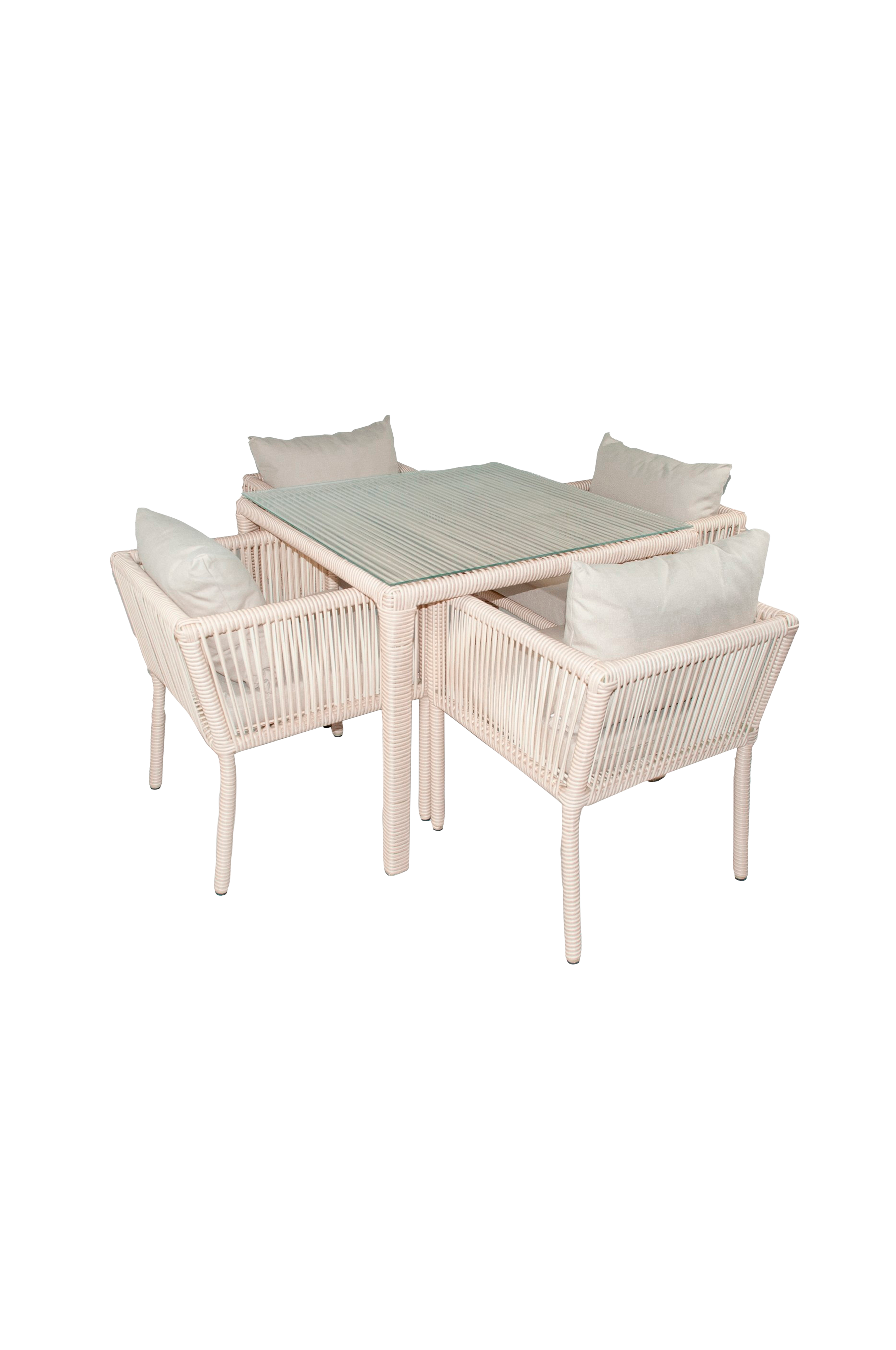 Runko: 100% alumiiniaPöytälevy: 100% karkaistua lasiaVastustuskykyinen tahroillePöydän mitat: leveys: 90 cm, korkeus: 75 cm, syvyys: 90 cm (1 kpl)Tuolin mitat: leveys: 60 cm, korkeus: 70 cm, syvyys: 58 cm (4 kpl)