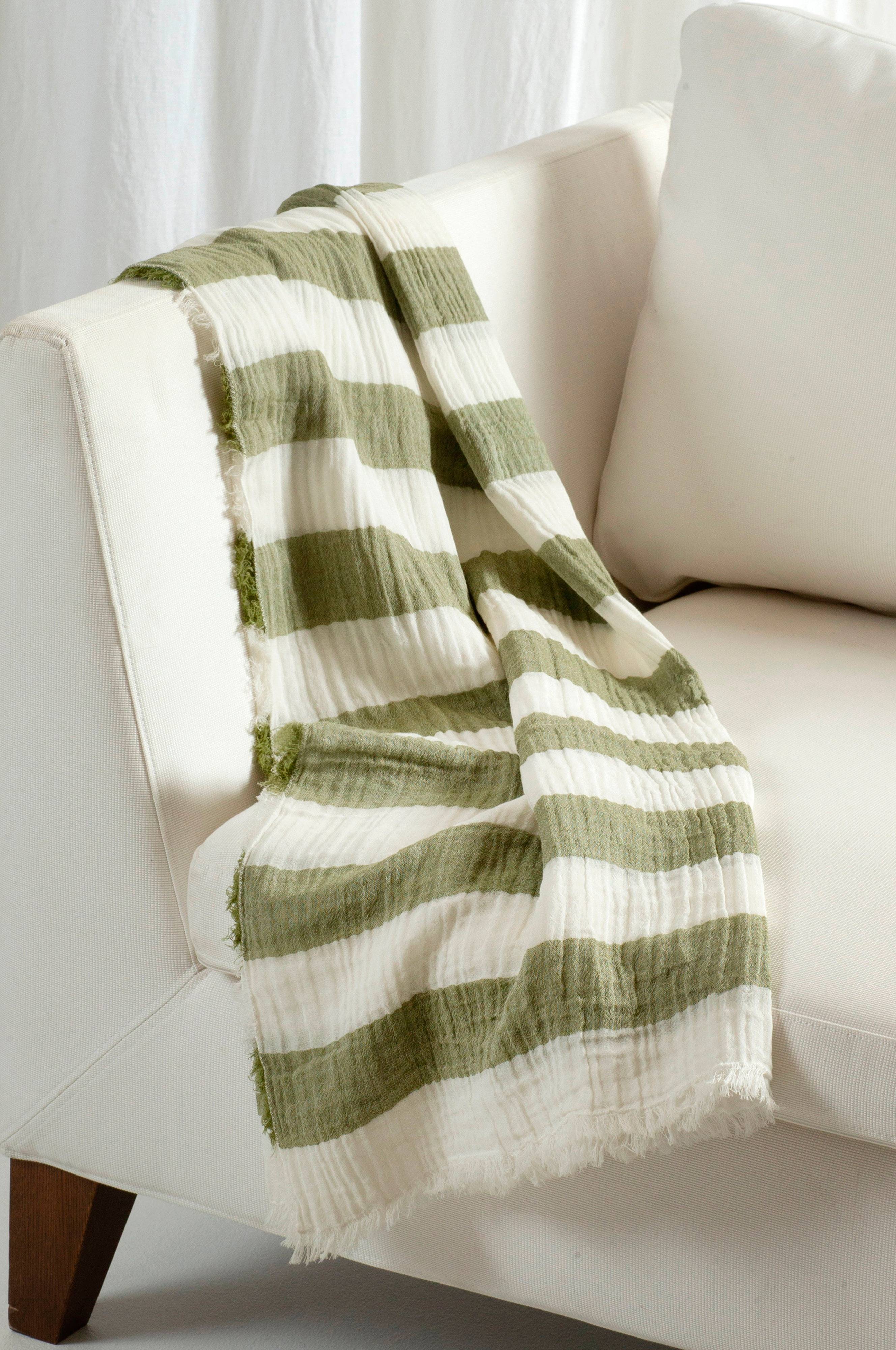 Antibes-puuvillainen heittopeitto on kudottu ohuesta musliinikankaasta, joka on tunnettu pehmeydestään ja hengittävyydestään. Peitto on lohkoraidallinen, ja siinä on hapsut joka puolella. Voit käyttää sitä myös huivina tai sarongina, sillä sitä on helppo käyttää ja se pitää vartalon viileänä ja mukavana. Konepesu 30°C hellävaraisessa pesussa. Pese erikseen. Kuivaa ripustamalla. Kutistuminen 5-7%.