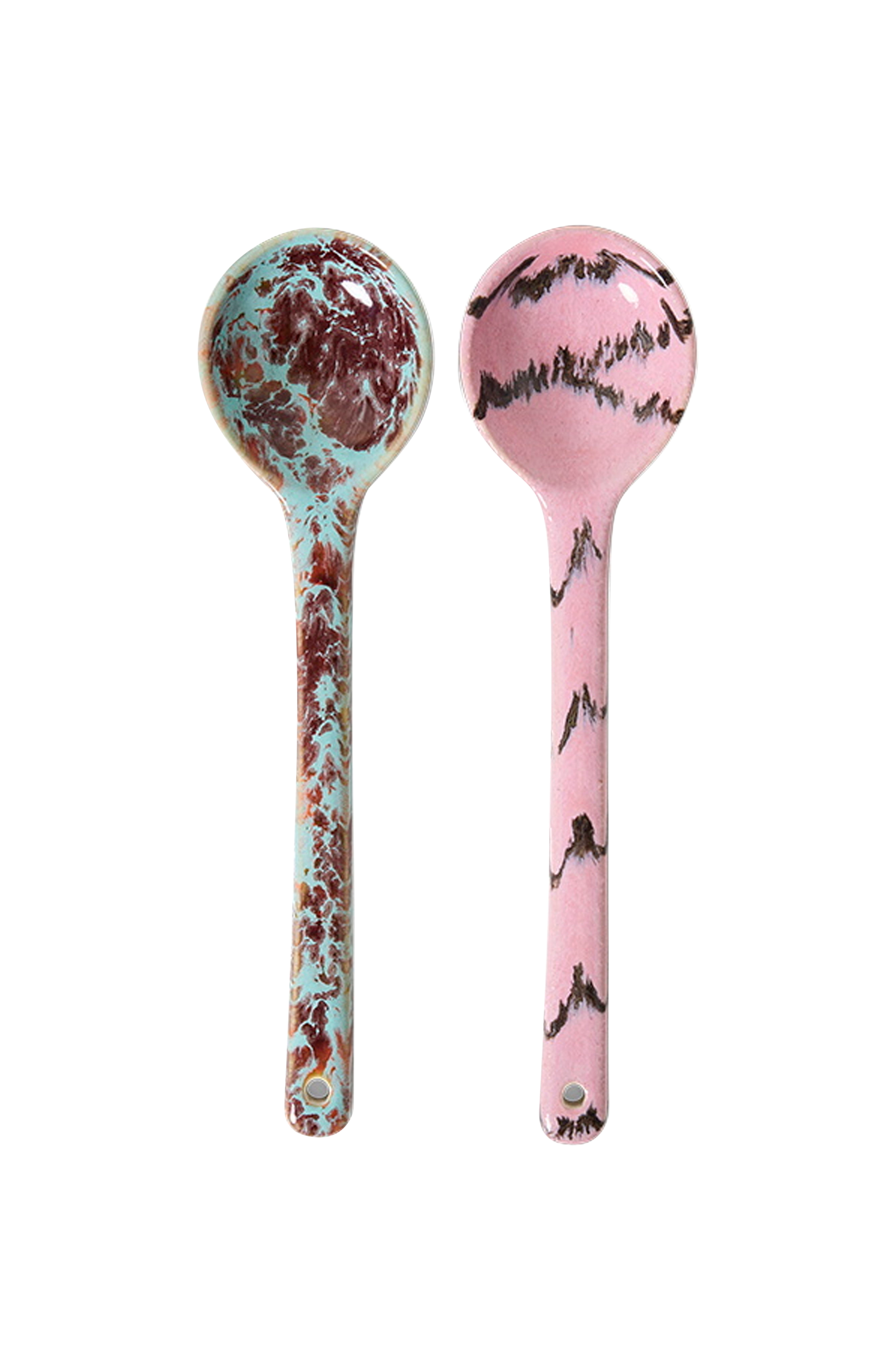 Uusi 70-luvun keramiikkakokoelma ammentaa inspiraatiota vuosikymmenten taiteesta – pop-taiteesta, surrealismista, ekspressionismista ja abstrakteista muodoista. Jokainen kappale yhdistää rohkeat viimeistelyt ja teksturoidut lasitteet, mikä luo sekä kuratoidun että luovan ilmeen. Tuo pöytä yhteen. Nämä suuremmat keraamiset lusikat on tarkoitettu salaattien, riisiruokien tai yhteisten aterioiden tarjoiluun – ne ovat kestäviä ja täynnä luonnetta. Materiaali: kivitavara. Eroja voi esiintyä. Mikroaaltouuninkestävä ja myös konepestävä.
