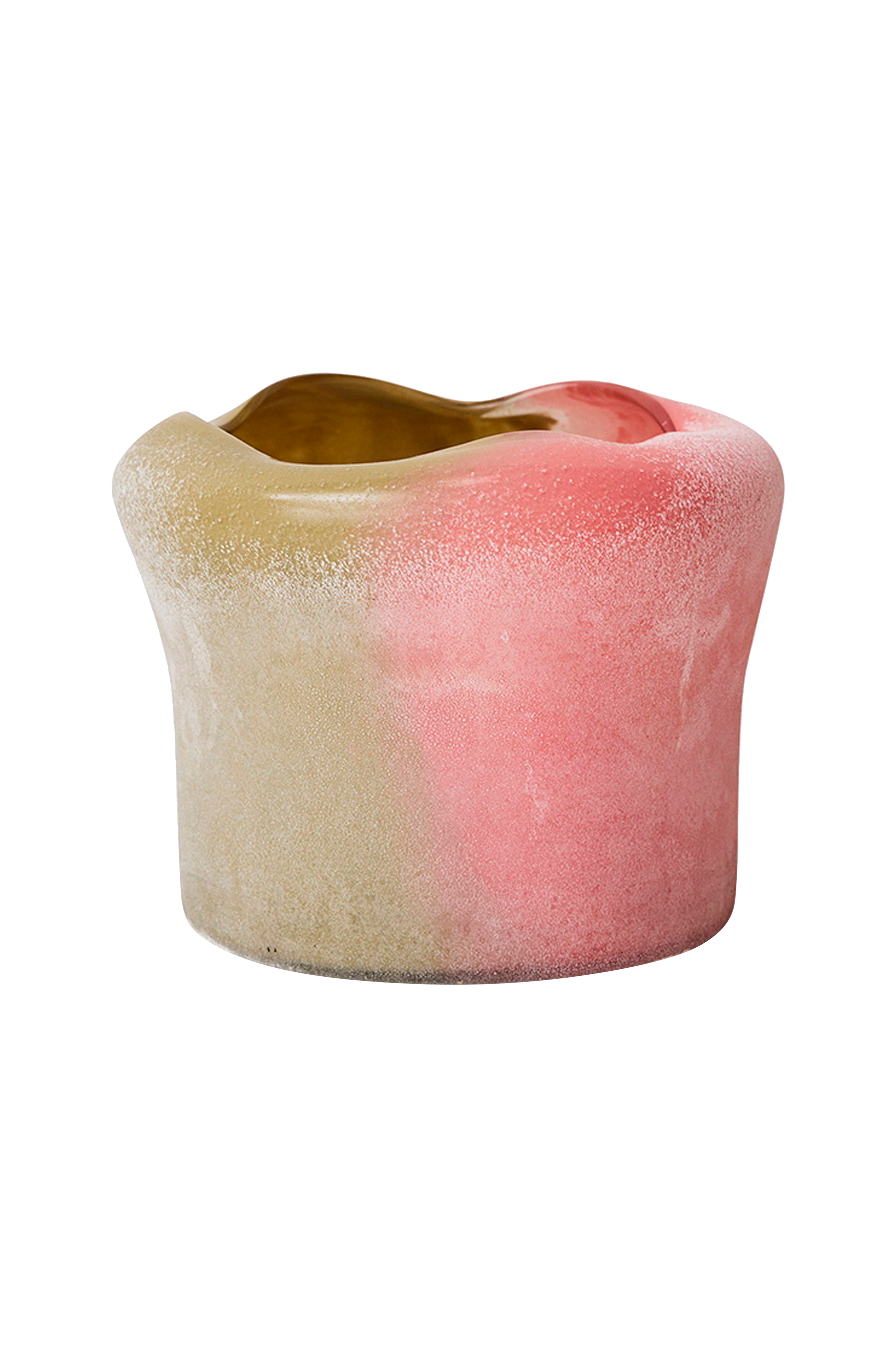 Rohkeat kaarevat muodot, pehmeät värit. Tämä veistoksellinen lasimaljakko erottuu edukseen omaleimaisella muodollaan ja ilmeikkäällä olemuksellaan. Valon ja katseen vangitsija – täydellinen avohyllyille, senkkiin tai osaksi tyyliteltyä asetelmaa. Materiaali: Natriumkalkkilasi.