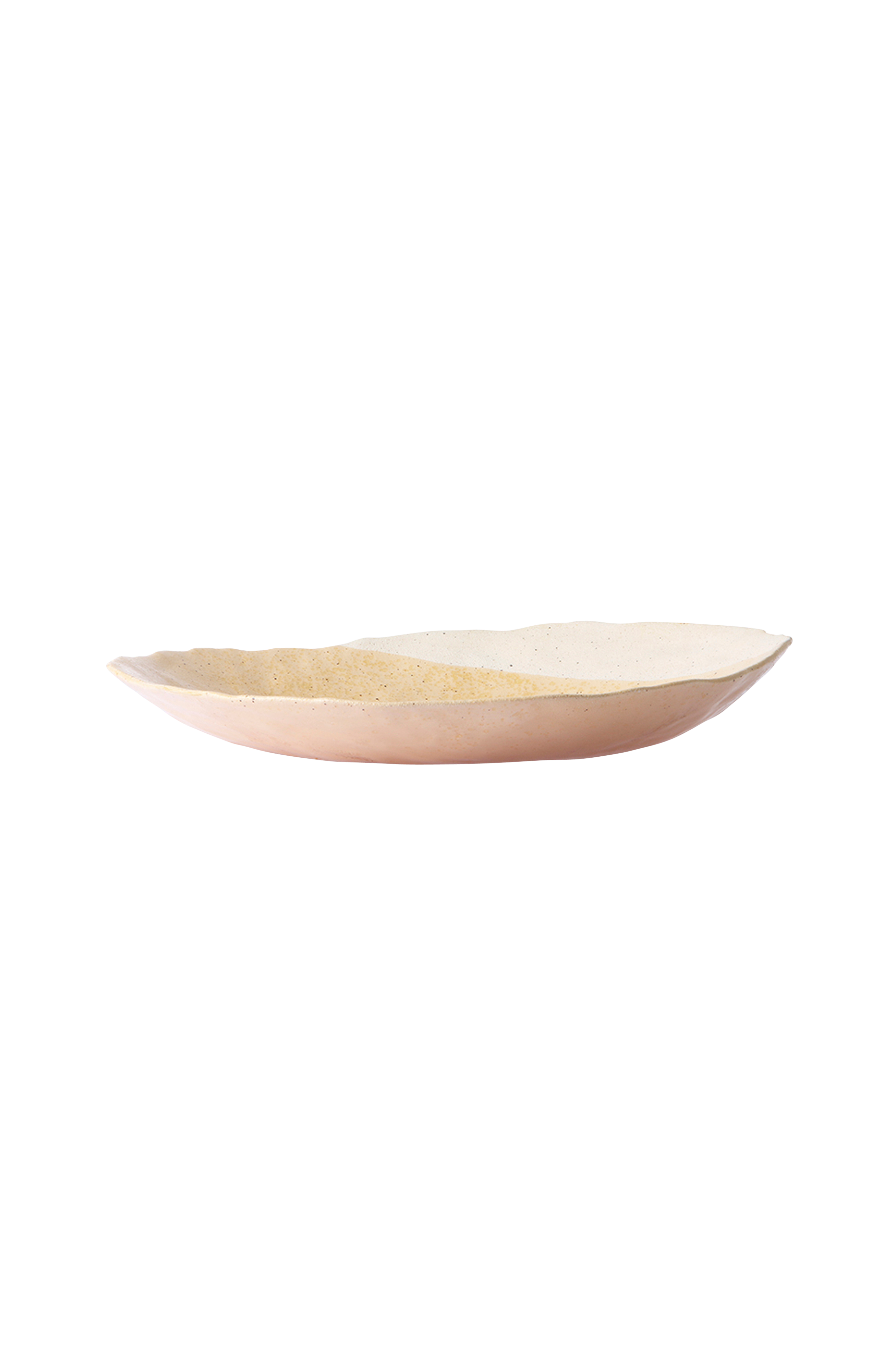 Koristeellinen keramiikkalautanen, jossa orgaaninen malli. Pituus 38 cm, syvyys 34,5 cm ja korkeus 5,5 cm. Ei kestä konepesua eikä mikroaaltouunia. Pyyhitään kostealla liinalla. Käsinmaalattu, joten eroja voi esiintyä.
