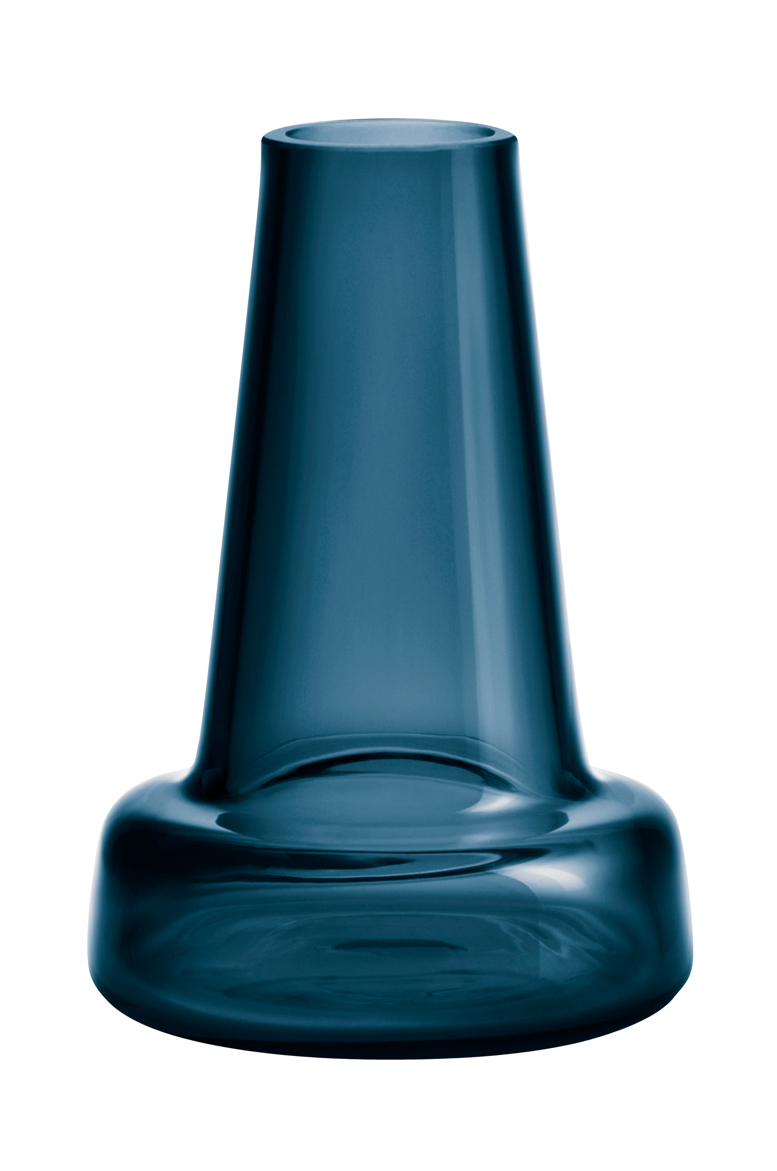 Flora-maljakko savunsinistä lasia. Korkeus 12 cm. Palkittu suunnittelija Louise Campbell on luonut Flora-maljakon ajatuksella, että tuoreet kukat tarvitsevat paljon vettä. Maljakko sopii hyvin pitkävartiselle kukalle. Sopii yksinään tai osana asetelmaa. Korkeus 24 cm.