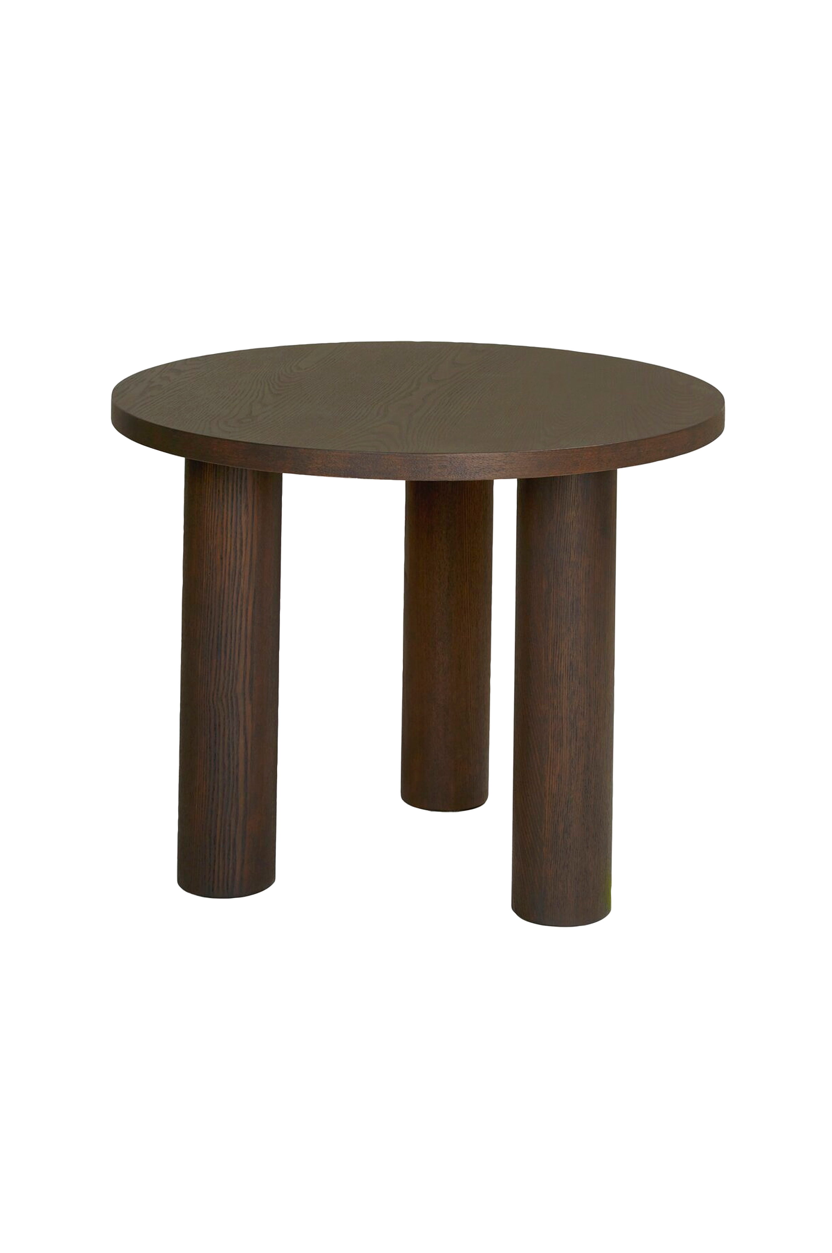 Tyylikäs sohvapöytä koivua, jossa tummanruskea viimeistely. Pöytälevy saarniviilua. Tyylikäs muotoilu ja kolme pyöreää jalkaa. Sohvapöytä on saatavana myös isompana, ja niitä voi hyvin käyttää sarjapöytänä tai erikseen.