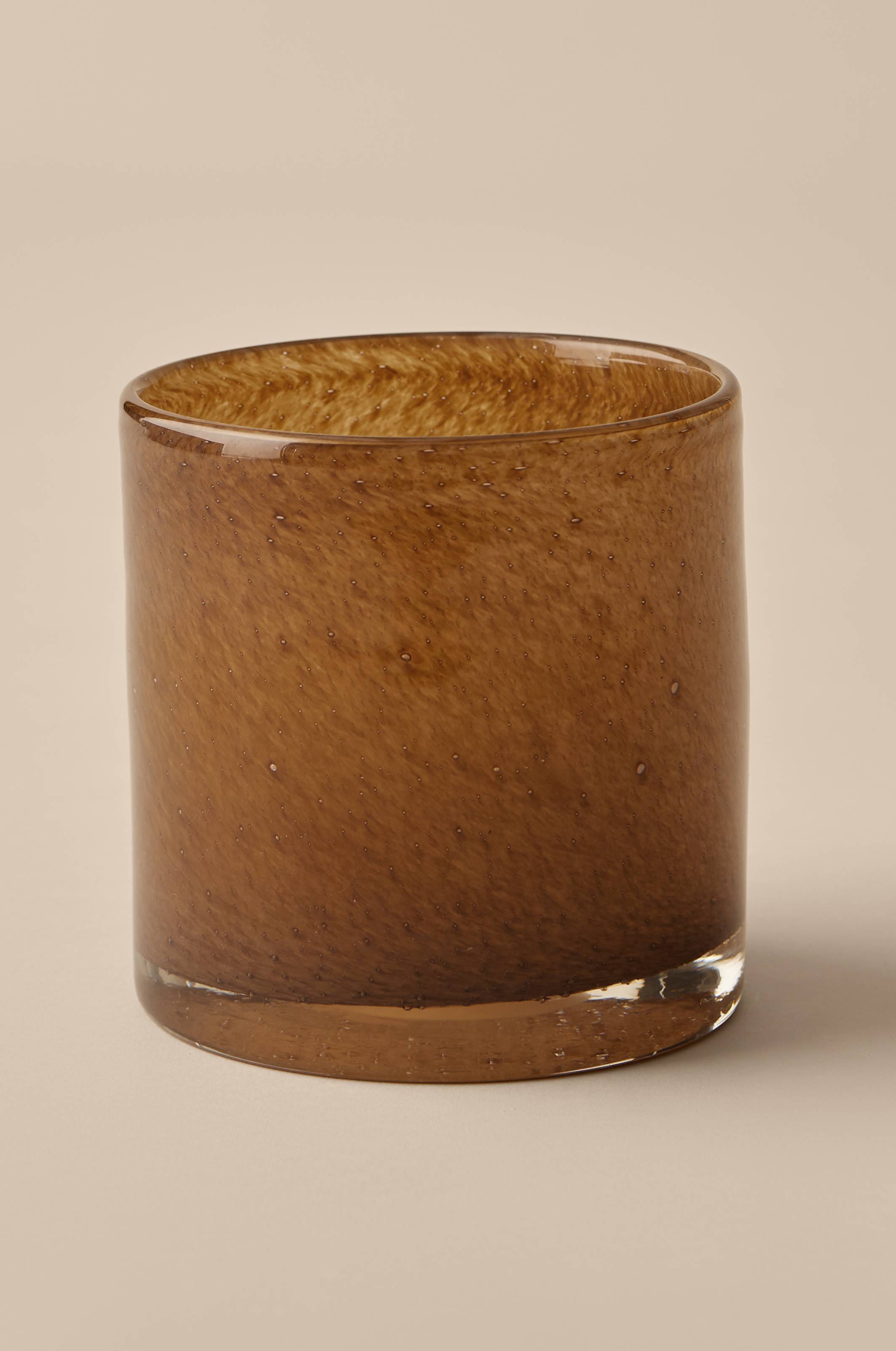 Kynttilälyhty tai pieni ruukku lasia. Kauniit sävyvaihtelut ja lasikuplat luovat upean vaikutelman ja tunnelmallisen valon. Tekniikka saa aikaan epätasaisuuksia ja sävyvaihteluita ja jokainen kynttilälyhty on ainutlaatuinen. Korkeus n. 15 cm, Ø n. 15 cm. Puhdistus käsin.