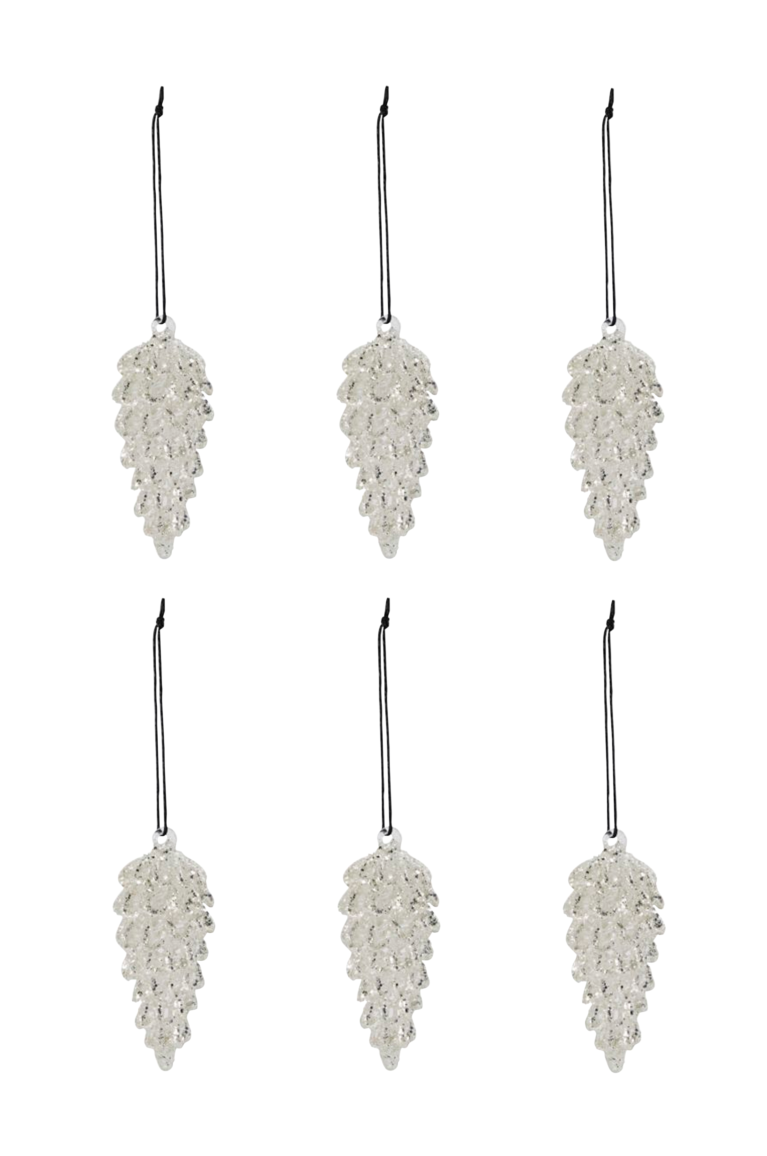 Hopeanväriset koristeet antavat joulukuuseen elegantin ja klassisen ilmeen. Lisää hieman kimalletta mukaan näillä kuudella isolla House Doctorin hopeanvärisellä kävyllä. Kimalle heijastaa joulukuusen valoja, kun taas hopea väri sopii melkein kaikenlaisiin koristeisiin. Persoonallisesta tyylistäsi huolimatta, Cone voi olla täydellinen lisä koristeluun ajattoman muotoilunsa ja värinsä ansiosta. Luo huomiota herättävä joulukuusi yhdistämällä lasikävyt kimaltaviin erivärisiin palloihin, tai keskity samaan sävyyn ja eri materiaaleihin. Saatavana myös pienempi koko ja kullanvärisenä. Korkeus 9 cm.