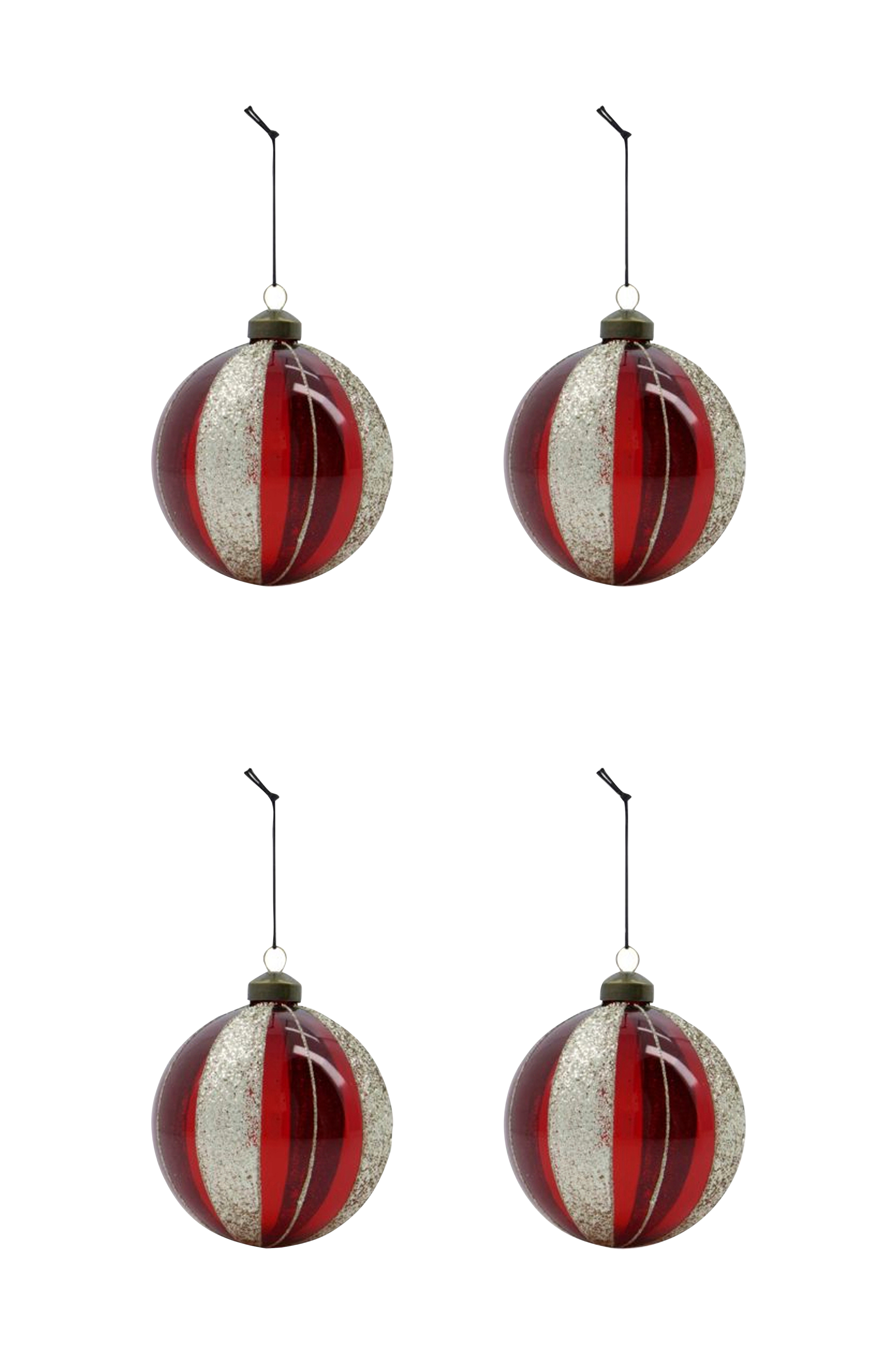 Kaksi klassista väriä ja hieman glitteriä jouluksi. Tämä House Doctorin 4 lasipalloa sisältävä pakkaus on tyylikäs lisä sisustukseesi runsaan viininpunaisen värinsä ja raitoja luovan hopeanvärisen glitterinsä ansiosta. Tämän mallin kanssa ei voi mennä vikaan. Ripusta pallot kuuseen tai aseta ne tarjottimelle antamaan kahvipöydällesi tai ikkunalaudallesi juhlava tunnelma. Ne levittävät taatusti iloa. Puhdista kuivalla liinalla. Suupuhallettu.