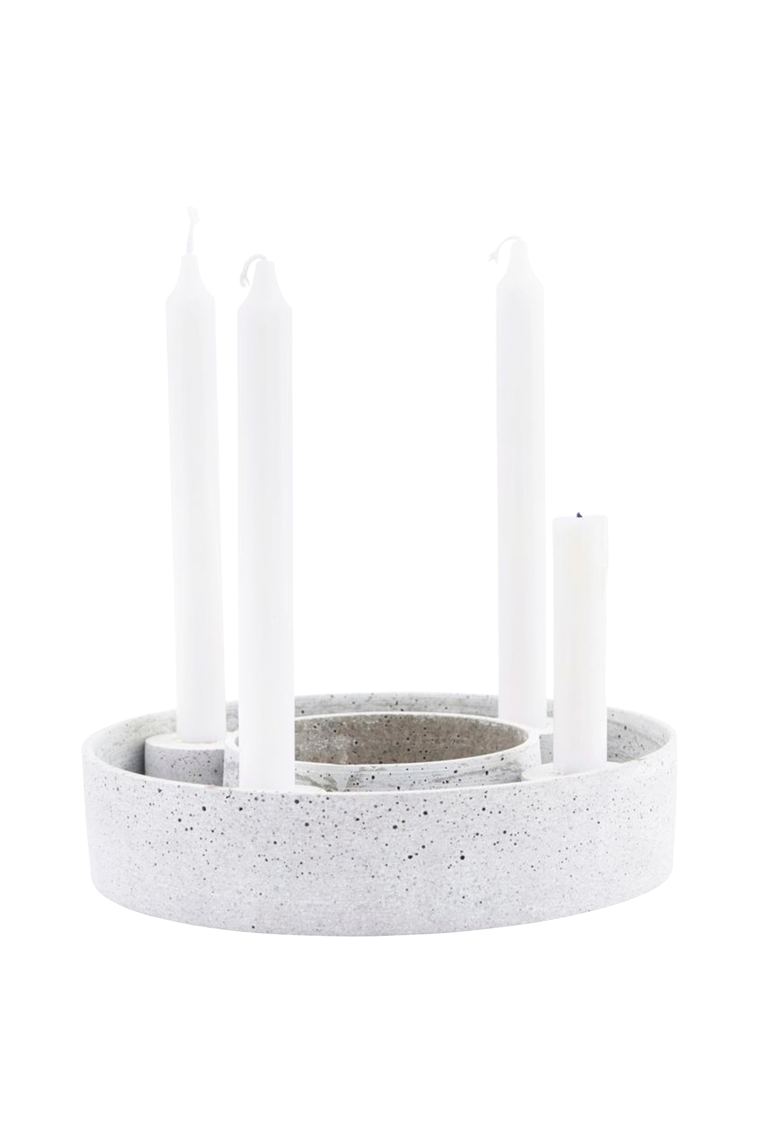 House Doctorin The Ring on kaunis ja moderni kynttilänjalka. Kauniissa, pyöreässä ja rustiikkisessa kynttilänjalassa on paikka 4 steariinikynttilälle. Kynttilänjalka on polystonea, mikä antaa luonteikkuutta ja kontrastia kauniille vaalealle värille ja pehmeille muodoille. Koristele kynttilänjalka kuusen oksilla ja joulukuusenpalloilla, ja luo oma kaunis ja persoonallinen joulukoriste tai adventtikranssi modernilla tvistillä.