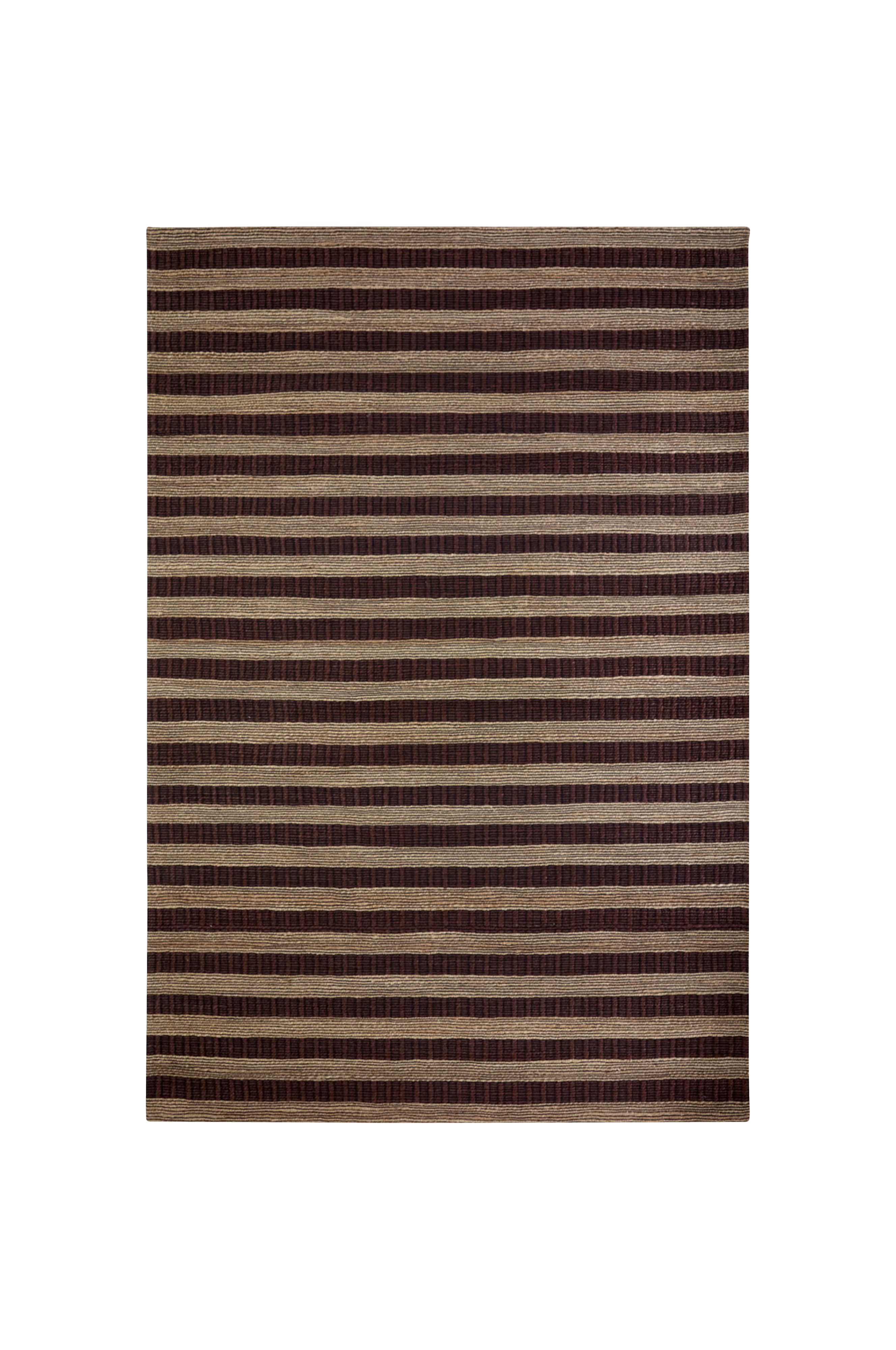 Tämä käsintehty matto klassisen ruskean ja luonnollisen sävyissä luo lämpöä ja rakennetta kaikkialle, minne sen sijoitat. Erottuvat raidat ja rikas juuttisekoite tuovat kutsuvan vaikutelman olohuoneeseen tai ruokapöydän alle.