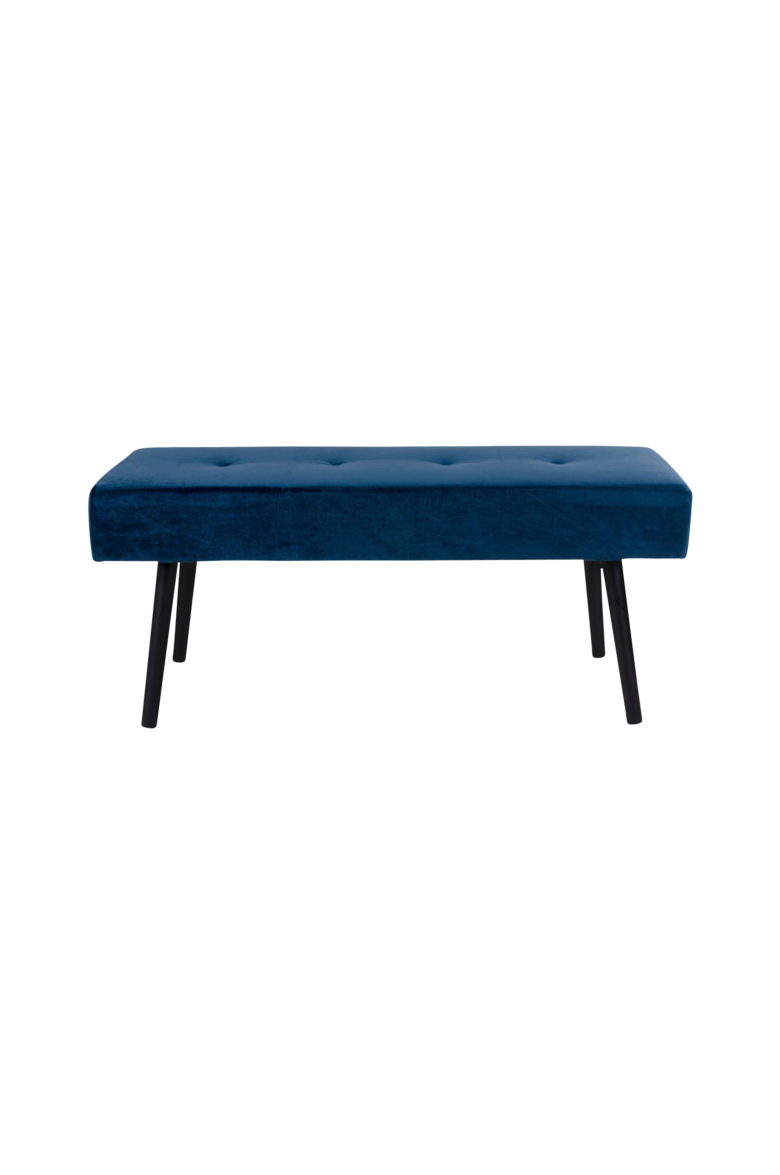 Samettipenkki teräsjaloilla. Mitat: Pituus: 35 cm. Leveys: 100 cm Korkeus: 44 cm. Materiaali: Materiaali: Sametti ja teräs. Ei koottu. Enimmäispaino 110 kg.