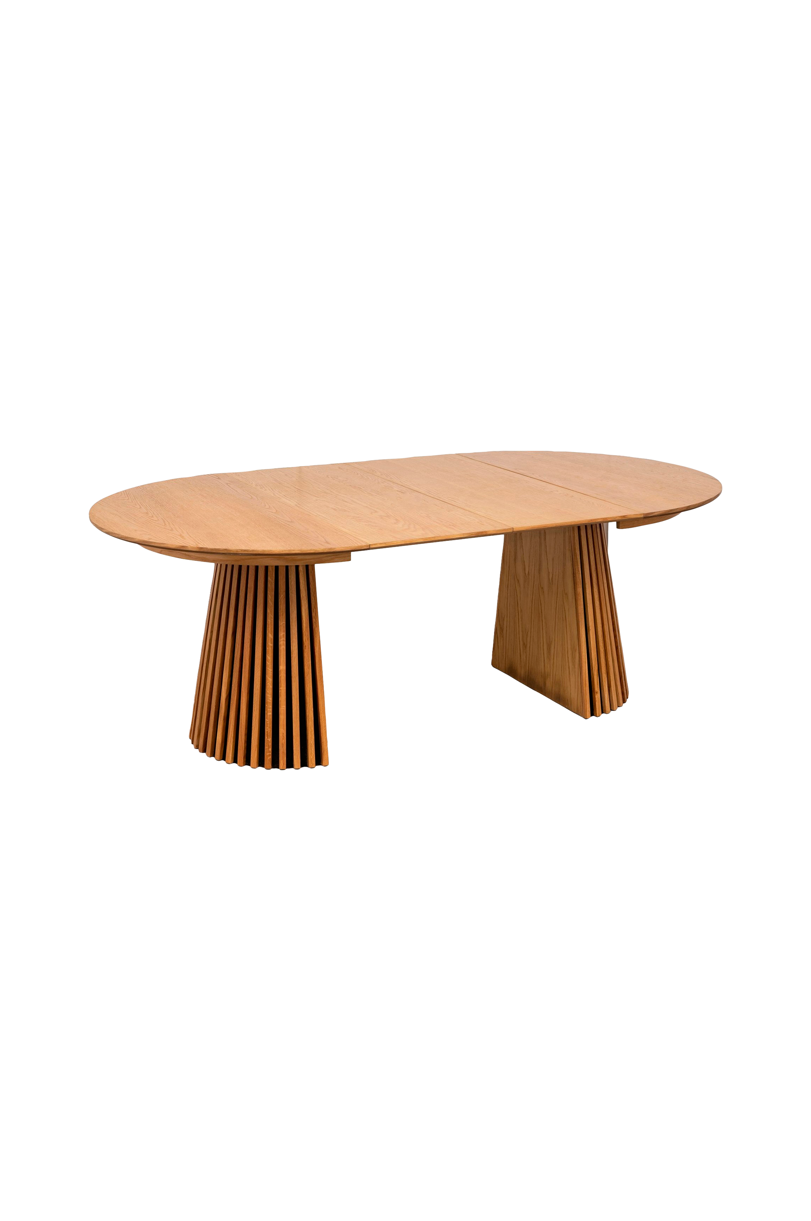 Ruokapöytä, tammiviilu, sis. kaksi jatkolevyä, ø120x120-160-200x75 cm