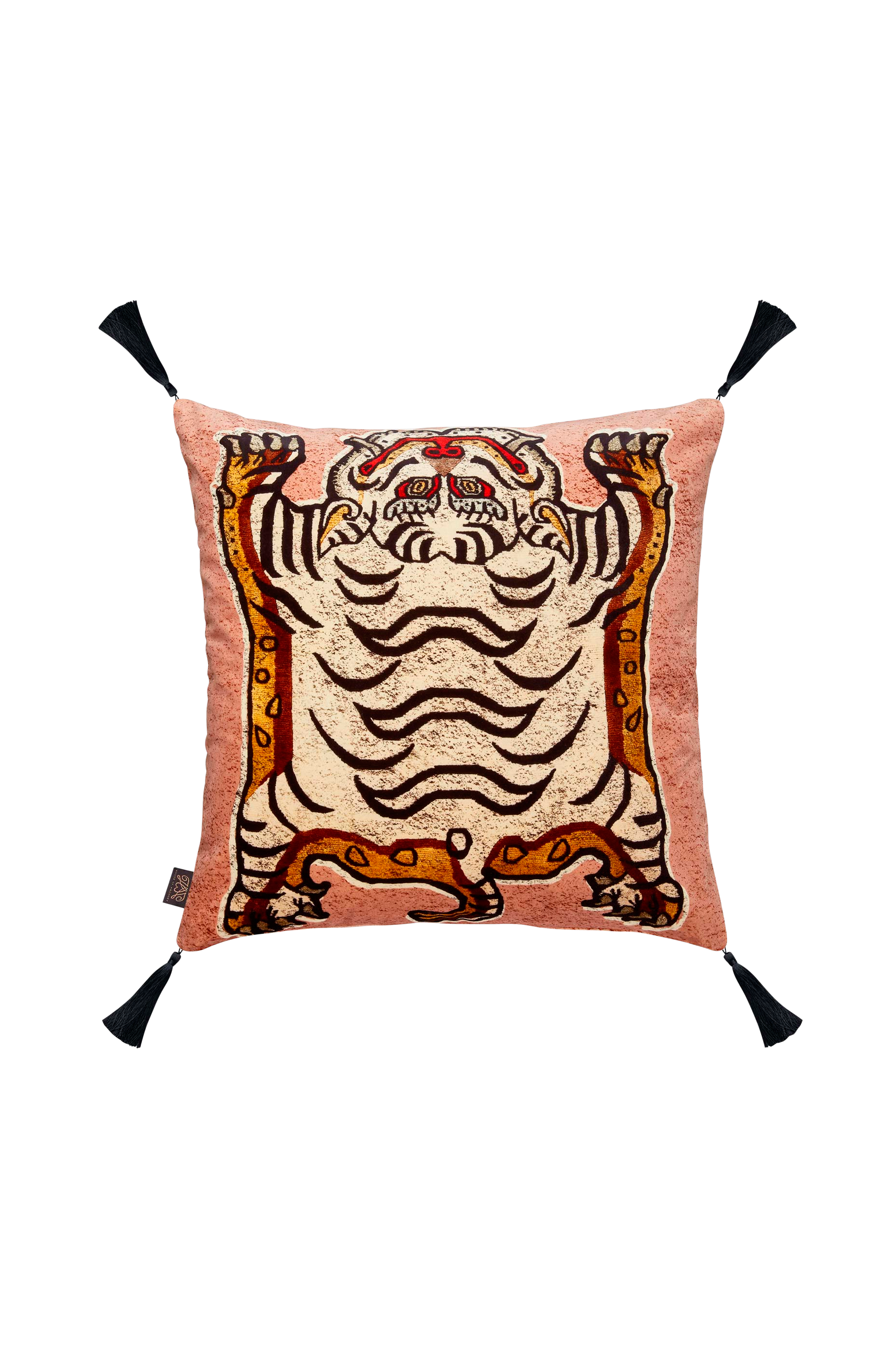 Tigris-tyynyn perinteinen tiibetiläinen kuvio luo ylellisen vaikutelman. Pehmeästä englantilaisesta sametista valmistettua tyynyä koristavat sievät mustat tupsut. Sisätyynyn täyte on 100% englantilaista villaa. Villa ei aiheuta allergiaa, se hylkii pölypunkkeja ja bakteereita, ja sitä pidetään ympäristön kannalta parhaana mahdollisena täytemateriaalina. Tyyny on 100% puuvillasamettia, ja sen koko on 60 x 60 cm. Kemiallinen pesu.