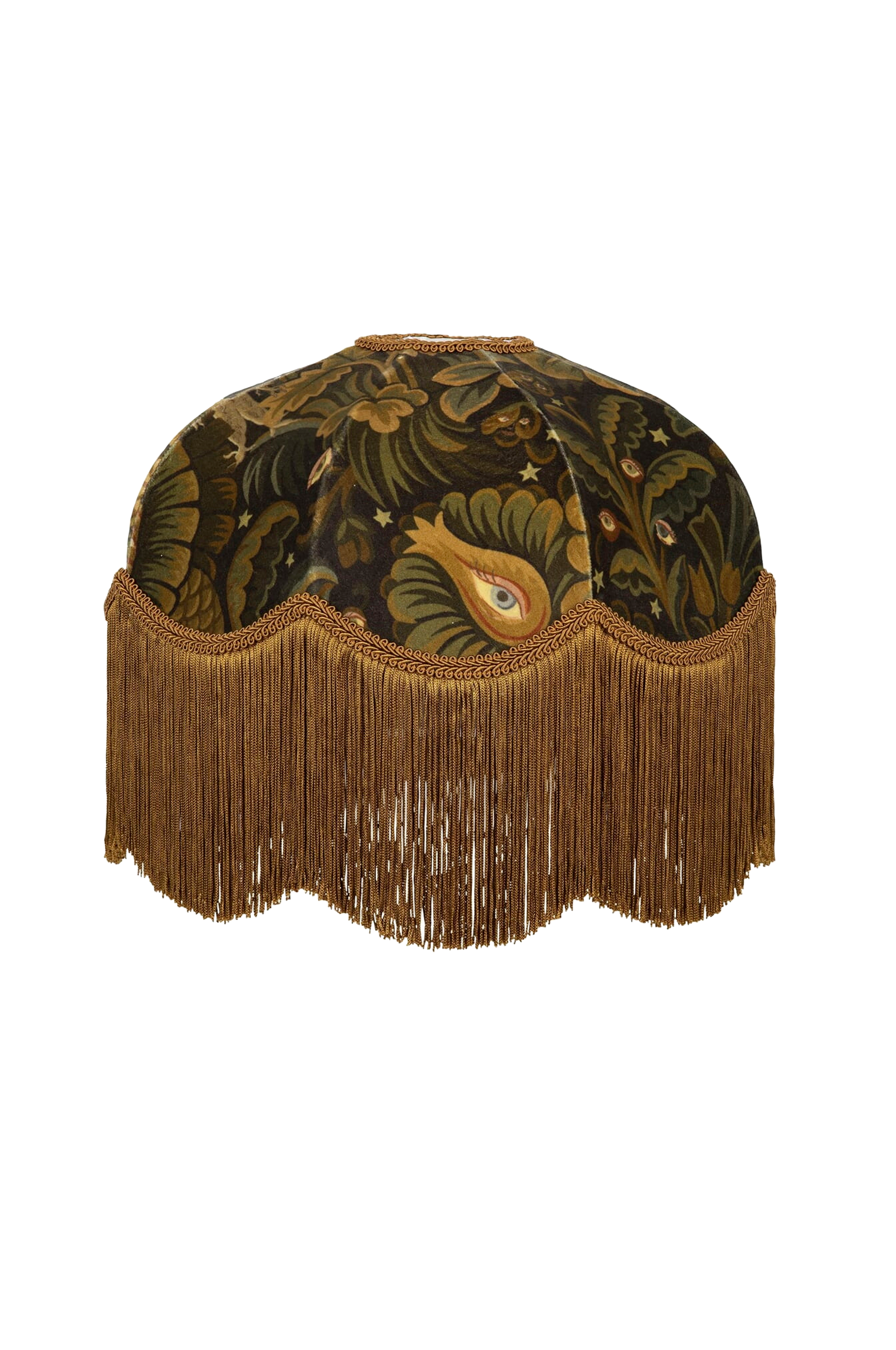 Tässä samettisessa Tilia-lampunvarjostimessa on ikoninen Victorianan inspiroima muoto, ja siinä on maaginen Moon Garden -kuvio "Midnight". Tämä Yhdistyneessä kuningaskunnassa käsityönä valmistettu lumoava kaunotar on viimeistelty tyylikkäällä antiikkikultaisella hapsulla. Mitat: K: 15,5cm x yläreuna: 8cm.