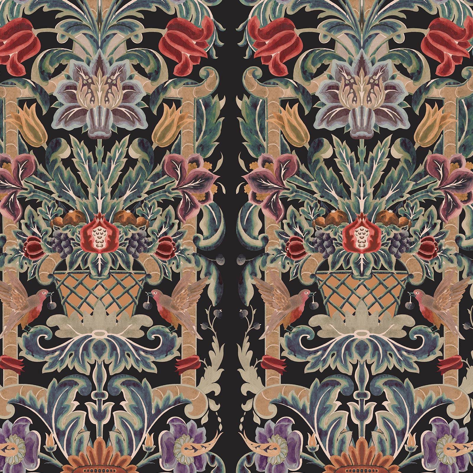 neljästä eri piirroksesta, jotka löydettiin Gainsboroughn arkistosta, Suffolkin tehtaasta, jossa on valmistettu joitakin maailman hienoimmista huonekalutekstiileistä vuodesta 1903. L 180 cm x K 300 cm