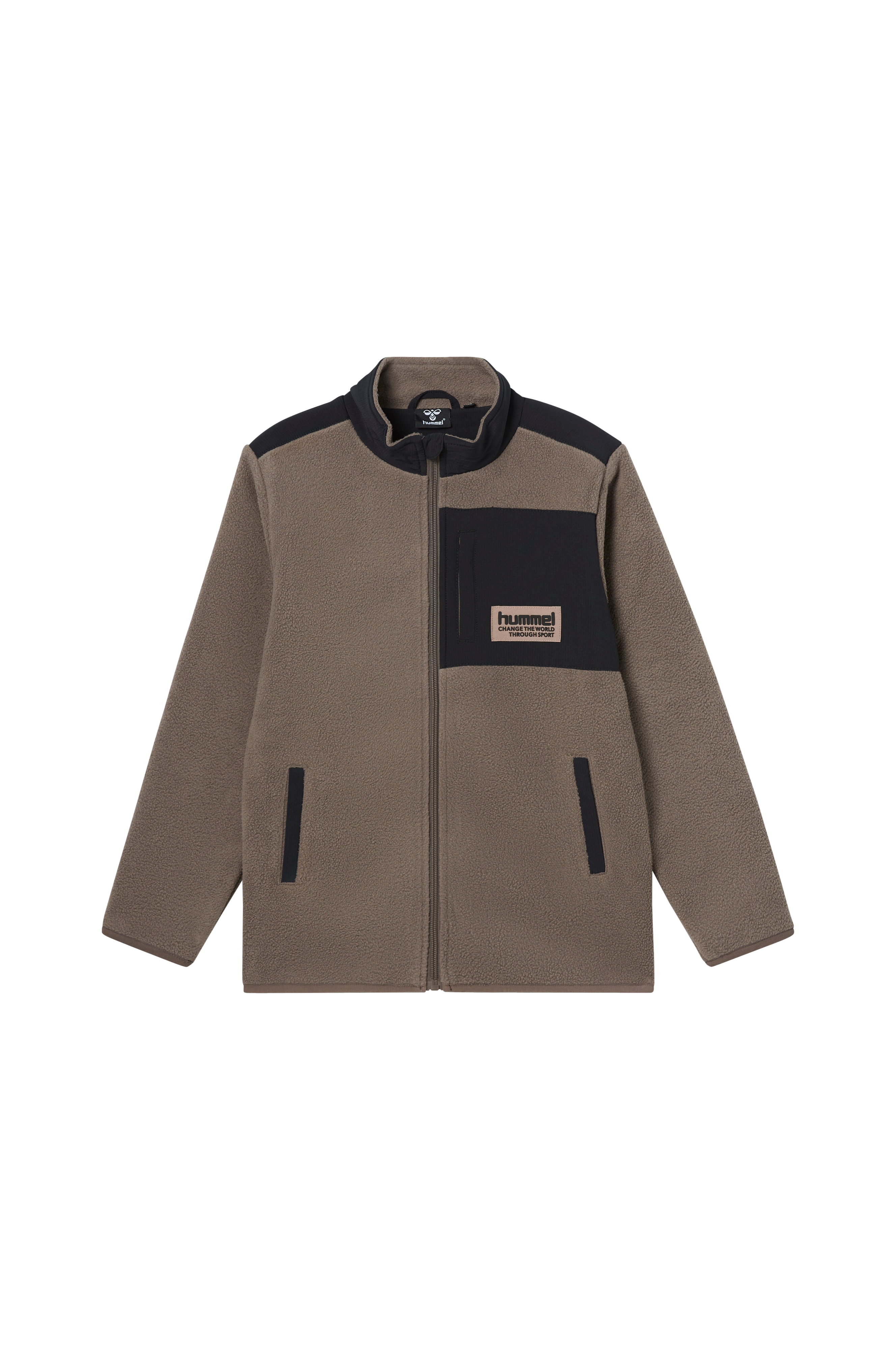 • Takki fleeceestä kudotulla, upotetulla kankaalla kauluksessa, ylhäällä takana ja rinnassa