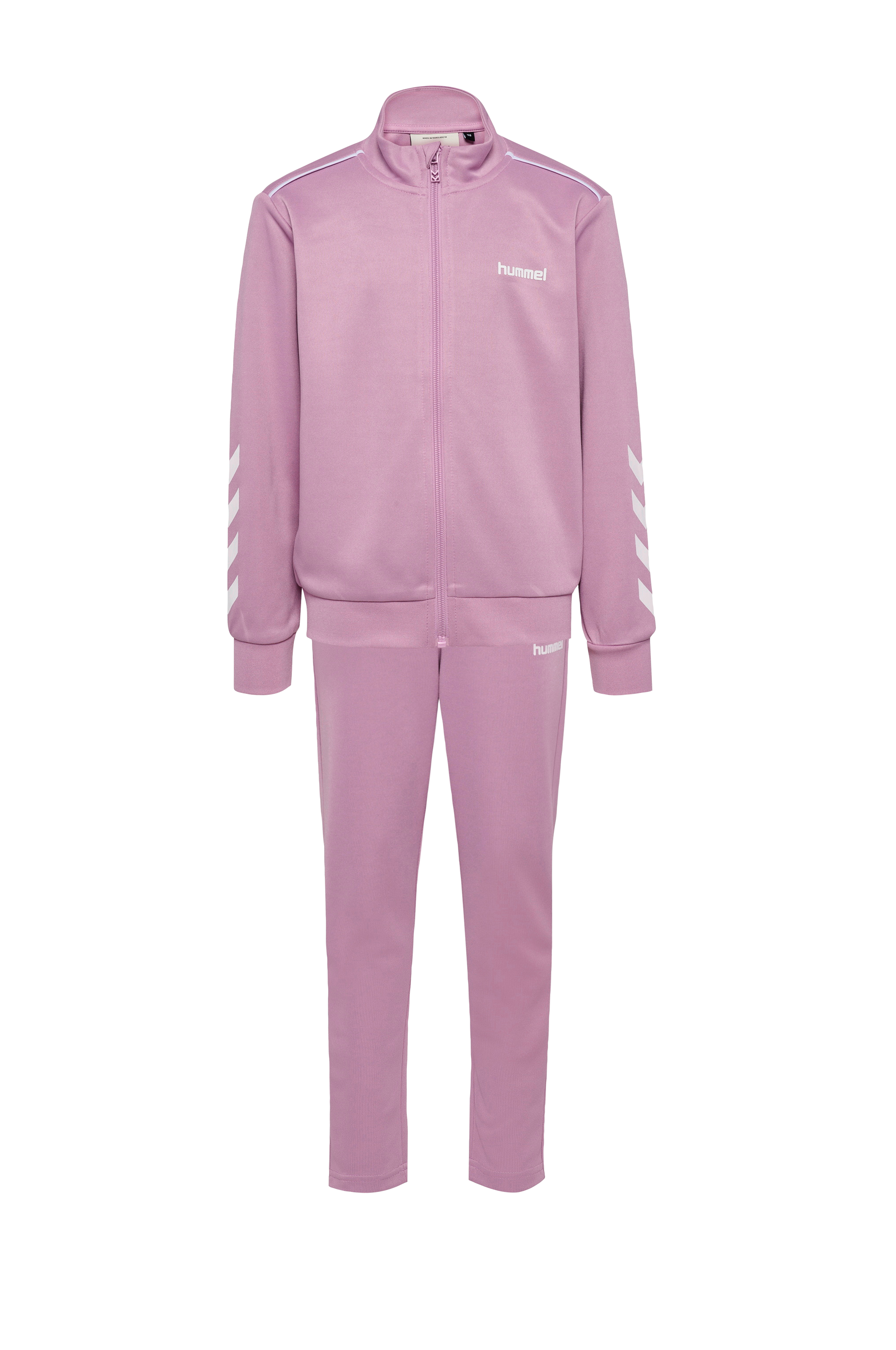 • Sporttinen treenisetti pehmeästä, hieman kiiltävästä trikoosta• Takki puolikorkealla kauluksella• Vetoketju• Pitkät hihat• Ribbiresorit hihansuissa ja alhaalla• Housut joustavalla vyötäröllä kiristysnyörillä• Koristeelliset logoprintit