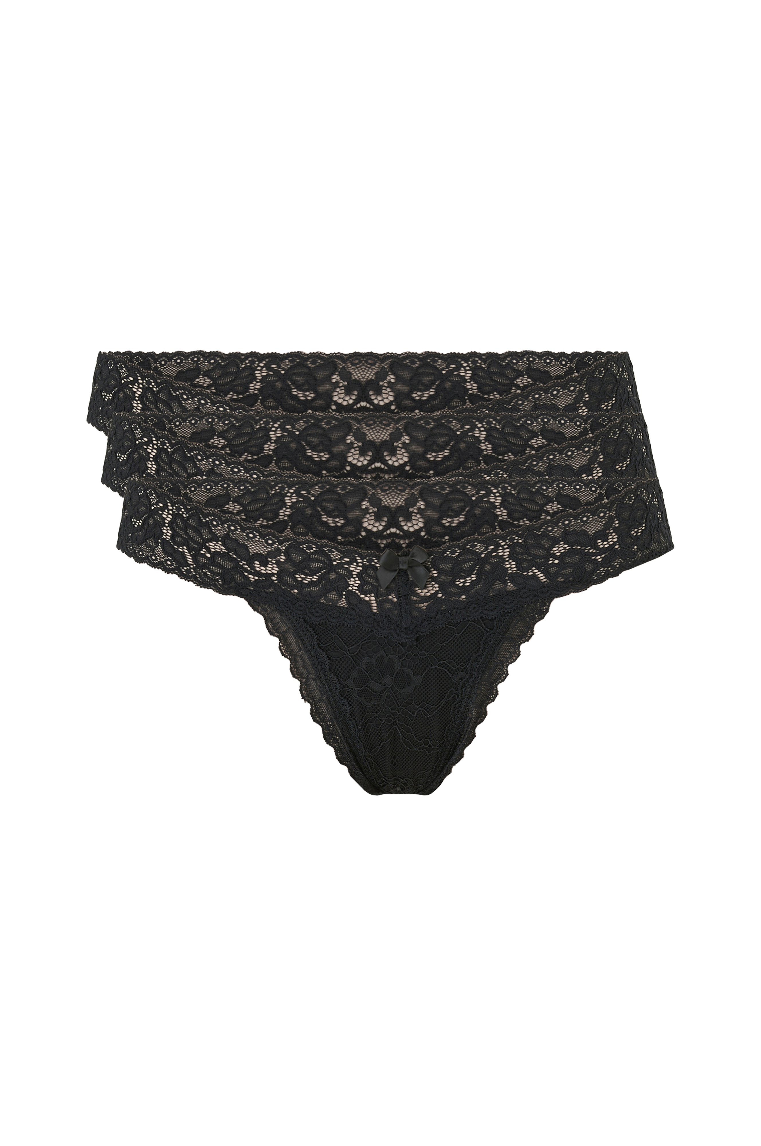 • Pitsillä peitetyt stringit• Rusettiyksityiskohta• Vuorattu haara• 3-pakkaus