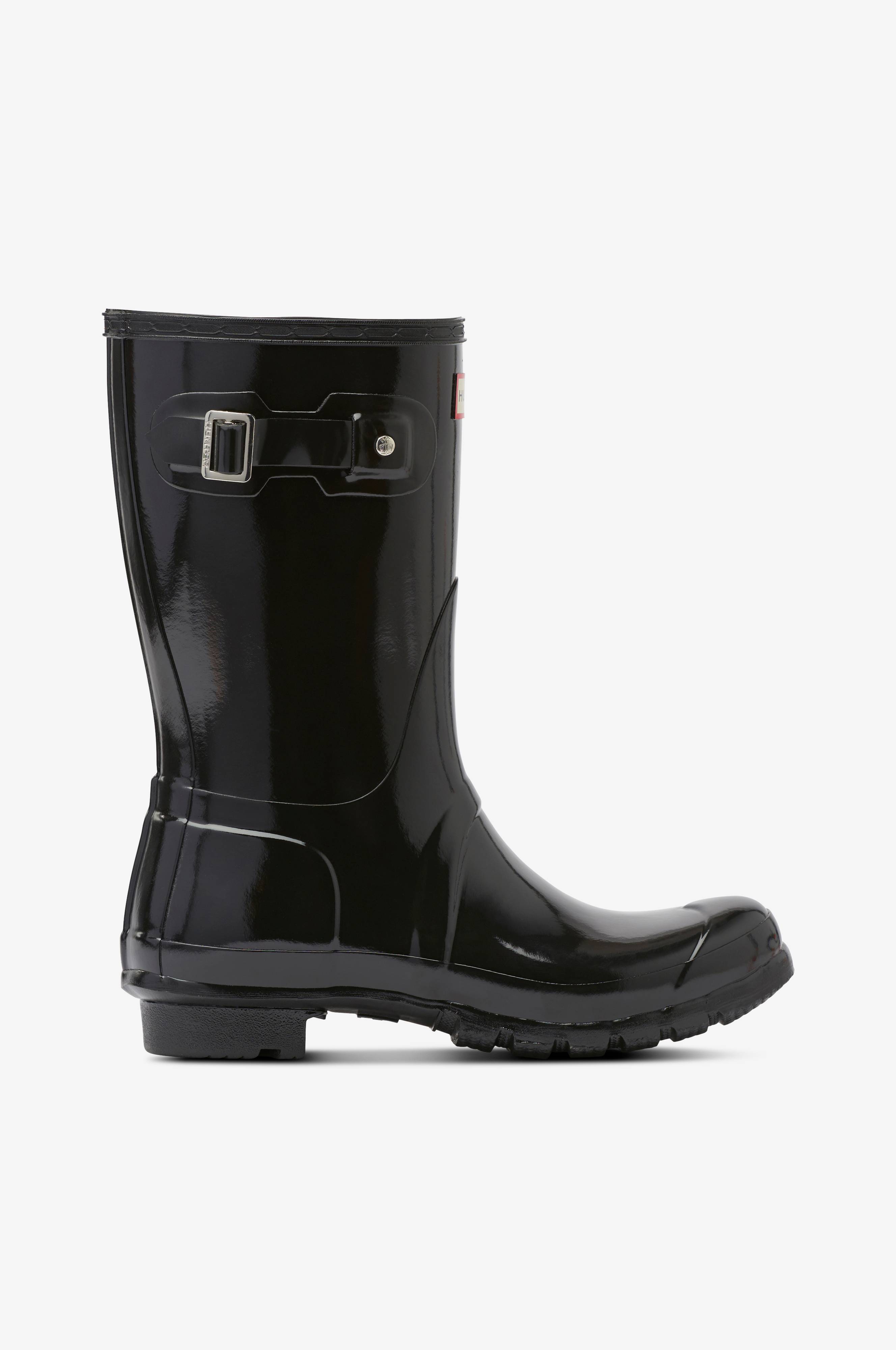 Hunter Womens Original Short Gloss -kumisaappaat. Käsintehty malli kestävää ja vedenpitävää luonnonkumia. Kiiltävä pinta. Miellyttävä sisäpinta polyesteriä parhaan mukavuuden varmistamiseksi. Koristesolki ja Hunter-merkki ylhäällä. Kuvioitu ulkopohja ja pieni korko. Varren korkeus n. 26 cm koossa 39.