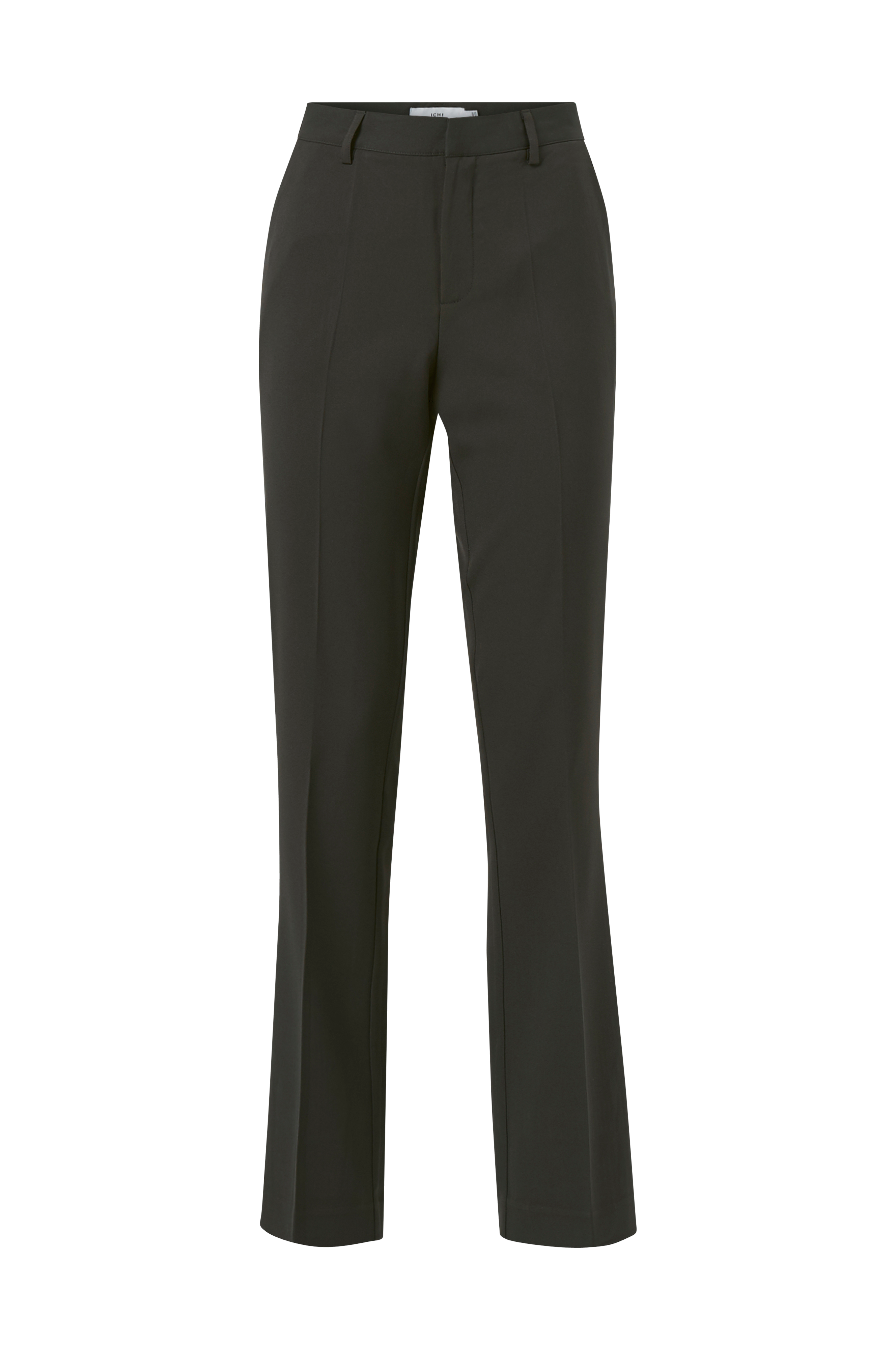 ICHI ixLexi Pants -housut. Prässit, kaksi viistoa etutaskua ja kaksi upotettua valetakataskua. Vyötärönauhassa vyölenkit ja edessä piilohakanen. Lahkeen sisäpituus n. 82 cm koossa 36.