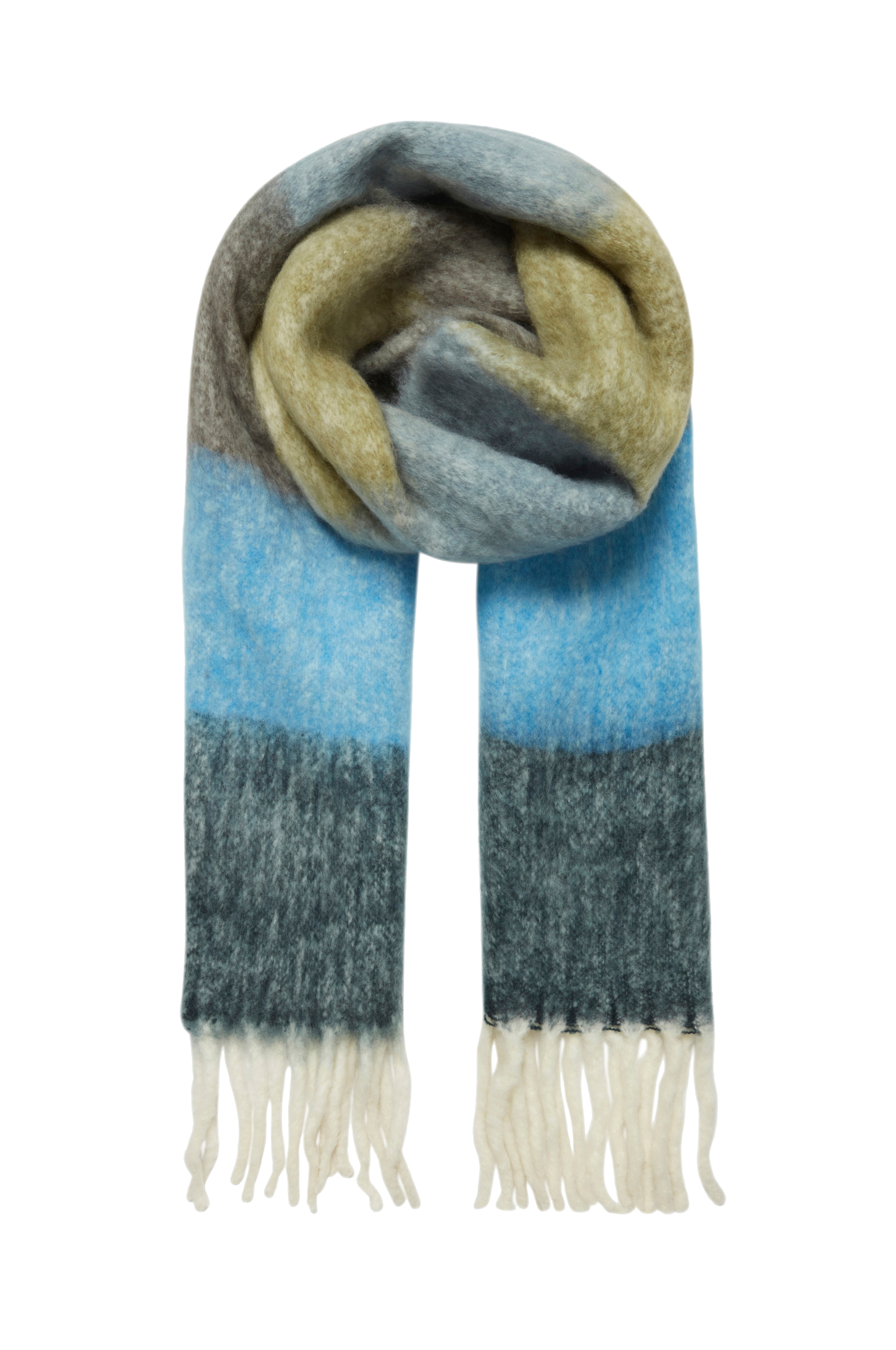 • Pehmeä, neulottu kaulaliina villasekoitteesta karvaisella pinnalla